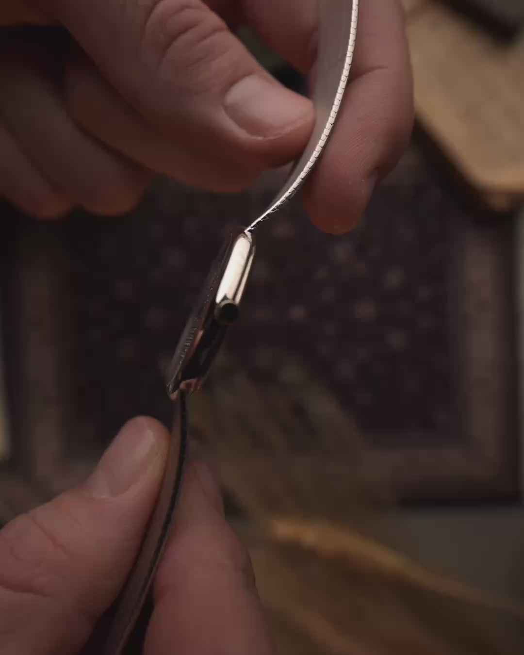 Il calibro 2003 ultrasottile, uno dei movimenti automatici più apprezzati dell'orologeria svizzera, è racchiuso in una cassa dello spessore di soli 4,5 mm. Il bracciale integrato in oro bianco avvolge con eleganza il polso, offrendo un comfort che si abbina alla sua raffinatezza architettonica.