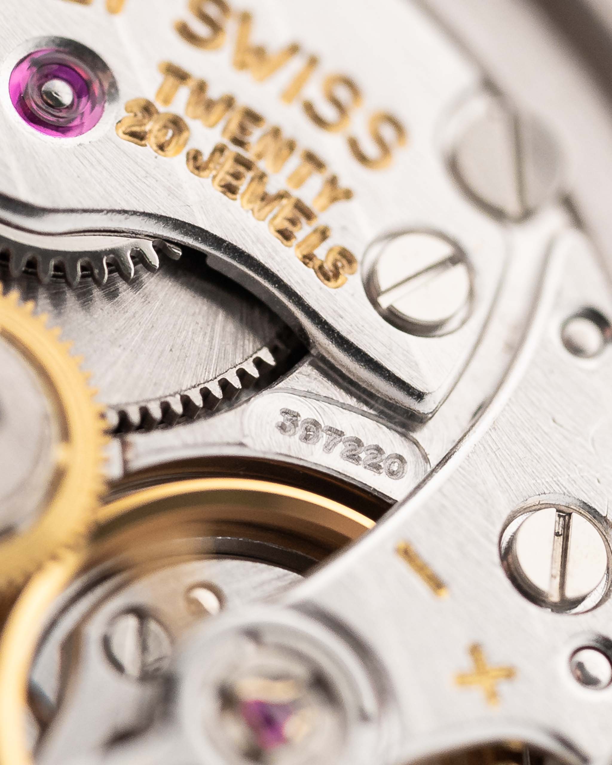 Primo piano di un Movimento Orologio Vintage di un orologio Patek Philippe.