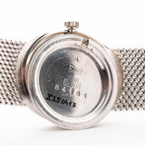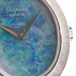 La cassa in oro bianco 18 carati, di 22,5 mm di diametro, è in perfette condizioni e impreziosita da un esclusivo bracciale in oro bianco 18 carati con finitura satinata. La ciliegina sulla torta è il quadrante in opale colorato. Le lancette Dauphine e il raffinato logo Chopard conferiscono all'orologio un aspetto sobrio e classico.
