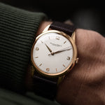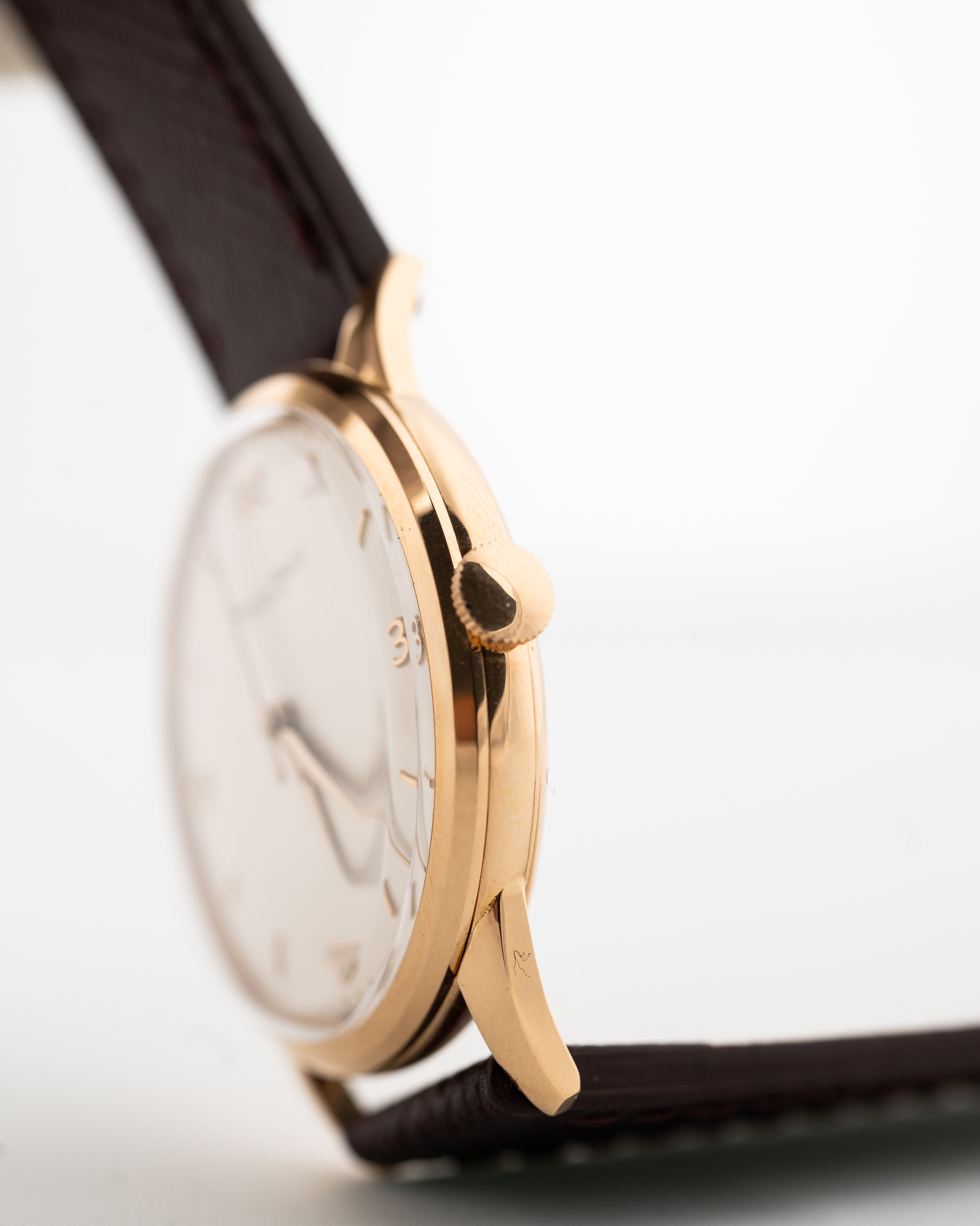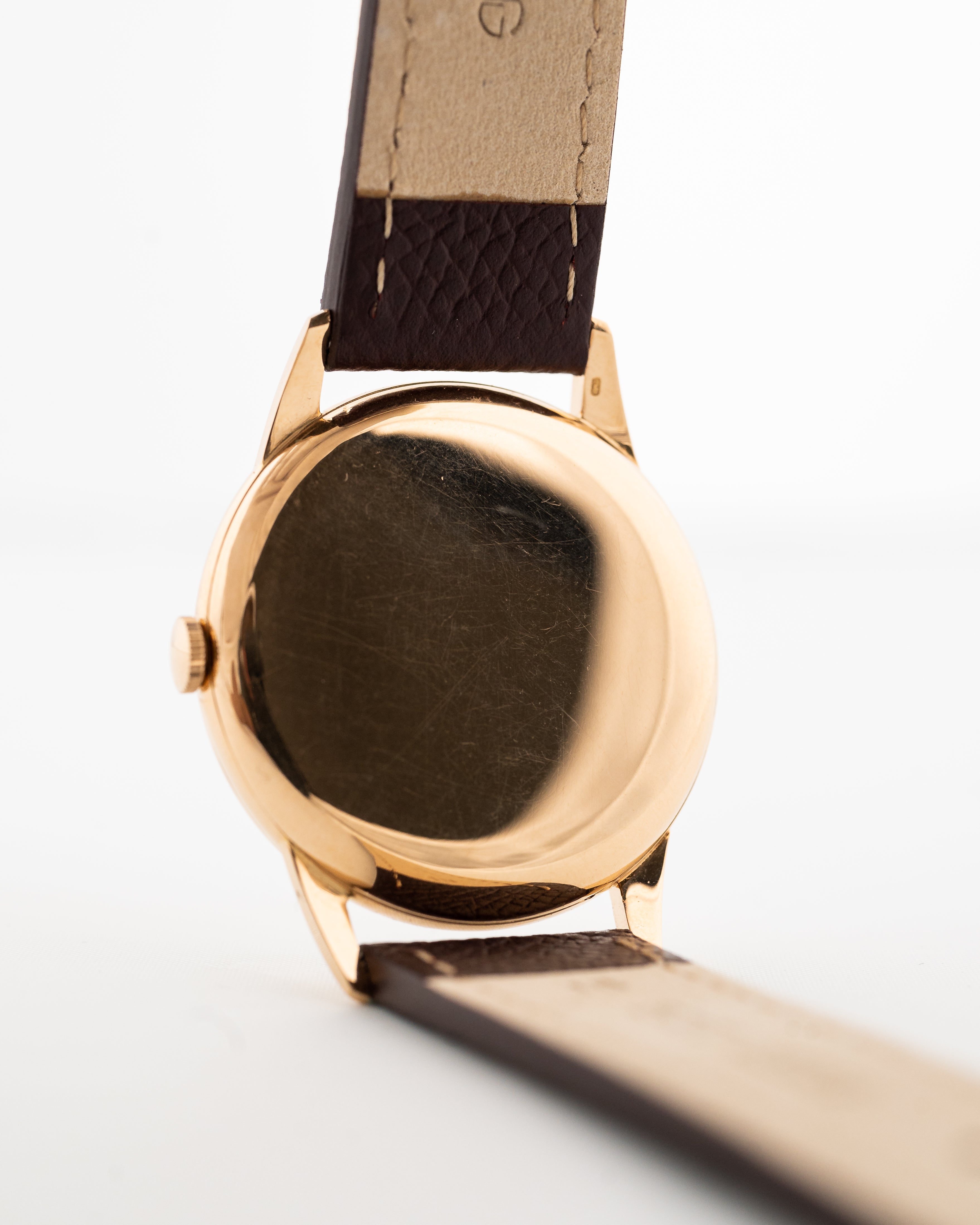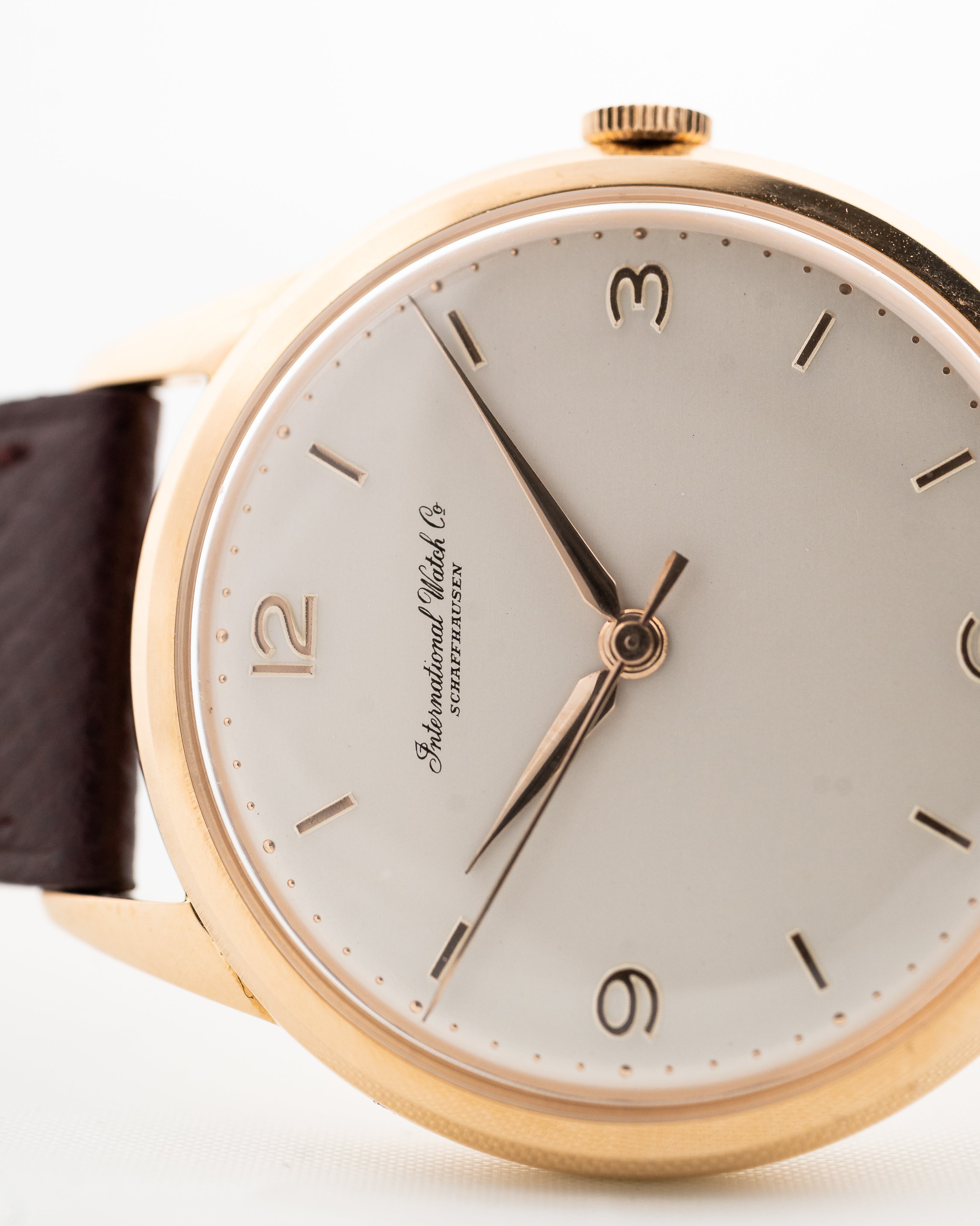 IWC ha prodotto un'ampia varietà di orologi da polso fin dall'inizio, spaziando dagli orologi da abito a quelli per l'aviazione. Questo esemplare, in oro rosa 18 carati in stile calatrava con una bella cassa semplice, rimarrebbe una costante nelle collezioni di chiunque, soprattutto perché si presenta in condizioni eccezionali.