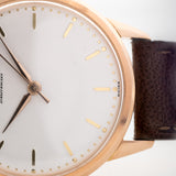 IWC ha prodotto un'ampia varietà di orologi da polso fin dall'inizio, spaziando dagli orologi da abito a quelli per l'aviazione. Questo esemplare, in oro rosa 18 carati in stile calatrava con una bella cassa semplice, rimarrebbe una costante nelle collezioni di chiunque, soprattutto perché si presenta in condizioni eccezionali.