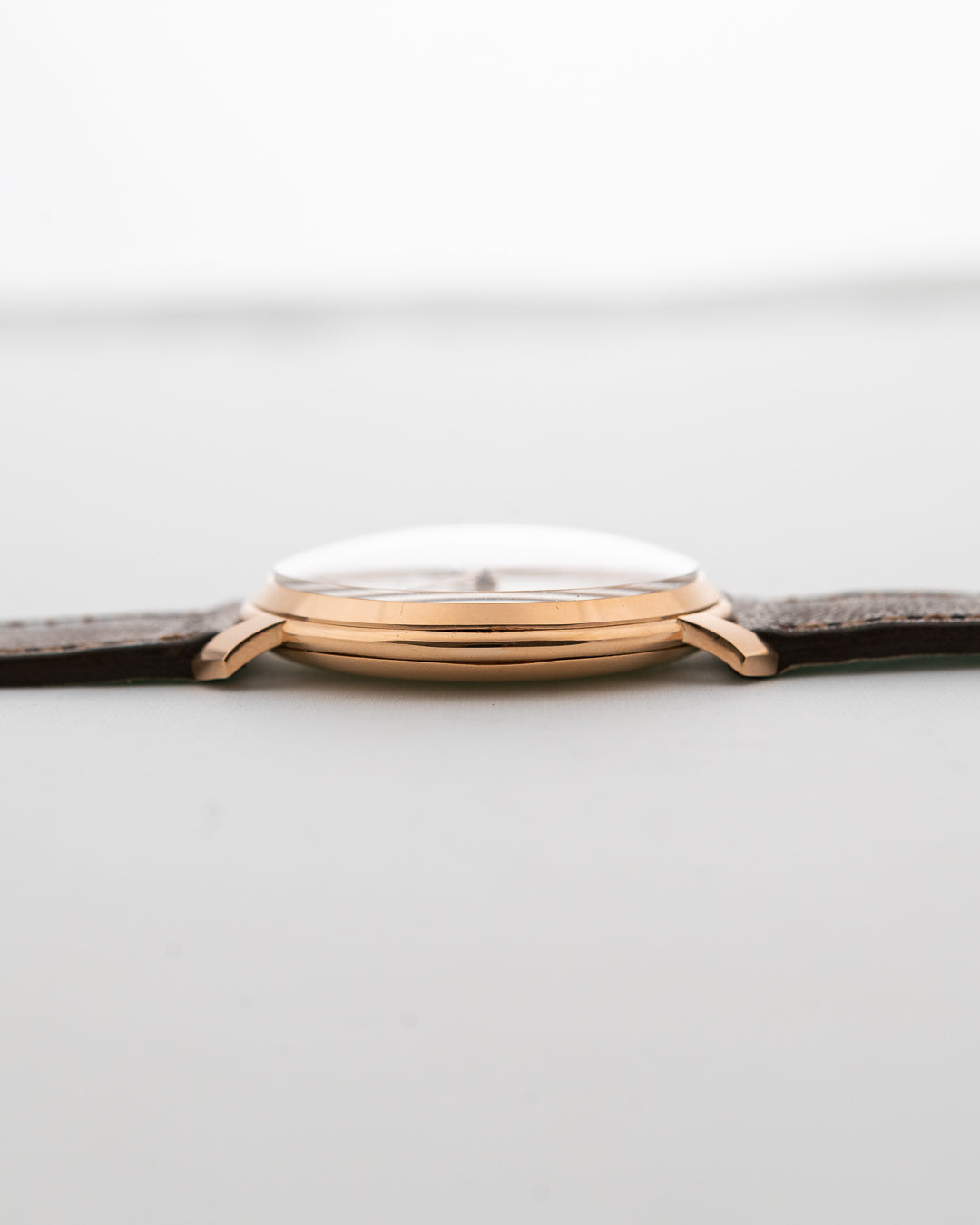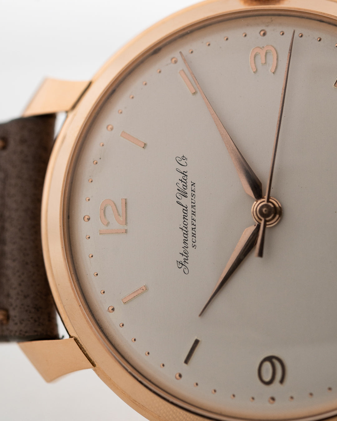 IWC ha prodotto un'ampia varietà di orologi da polso fin dall'inizio, dagli orologi da sera a quelli per l'aviazione. Questo esemplare, in oro rosa 18 carati con anse a pinna di squalo, rimarrebbe una costante nelle collezioni di chiunque, soprattutto perché si presenta in condizioni NOS.