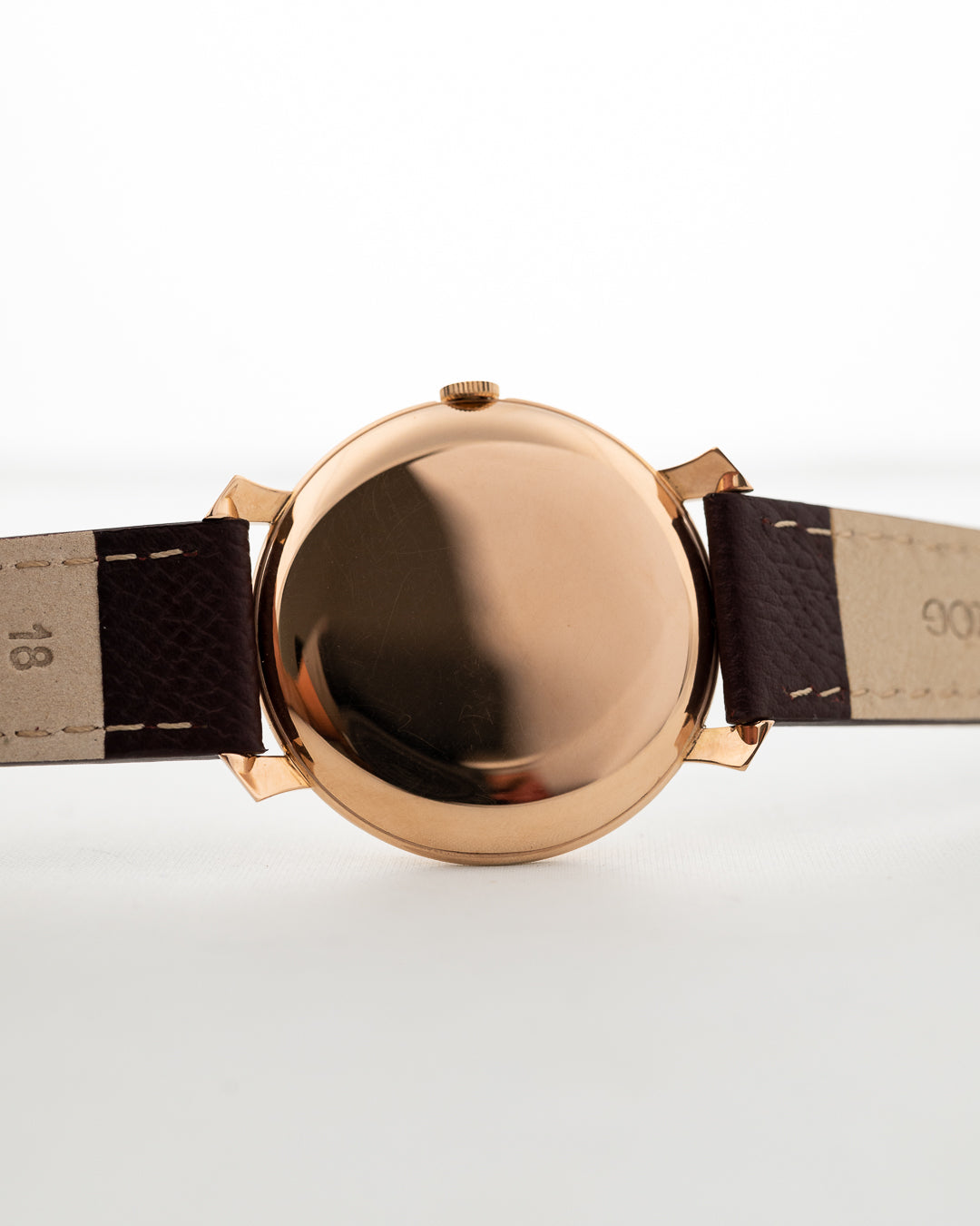 IWC ha prodotto un'ampia varietà di orologi da polso fin dall'inizio, dagli orologi da sera a quelli per l'aviazione. Questo esemplare, in oro rosa 18 carati con anse a pinna di squalo, rimarrebbe una costante nelle collezioni di chiunque, soprattutto perché si presenta in condizioni NOS.