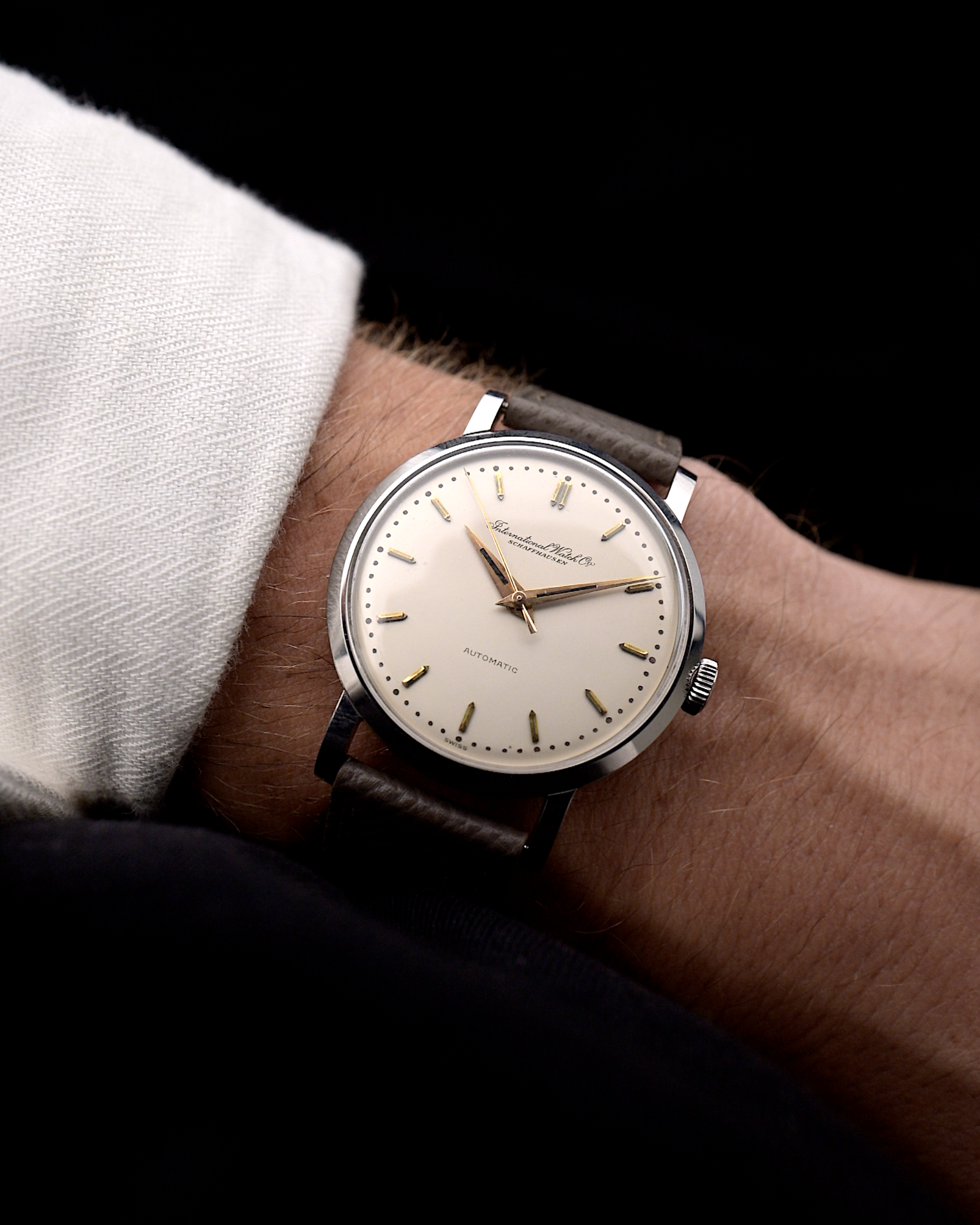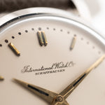 IWC ha prodotto un'ampia varietà di orologi da polso fin dall'inizio, dagli orologi da sera a quelli per l'aviazione. Questo esemplare con cassa in acciaio inossidabile è in condizioni straordinarie e ha un quadrante color crema dal design meraviglioso , con indici e lancette a bastone, che rimarrebbe una costante nelle collezioni di chiunque.