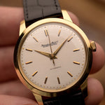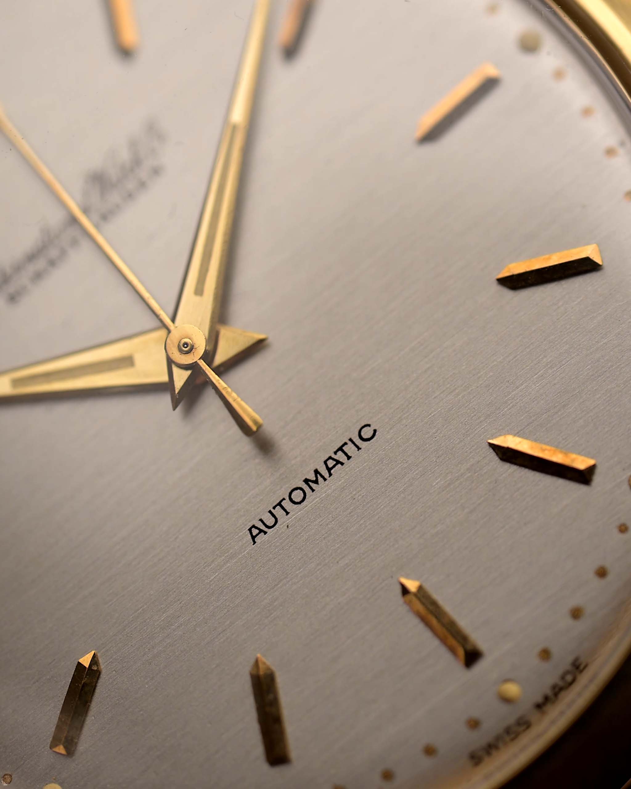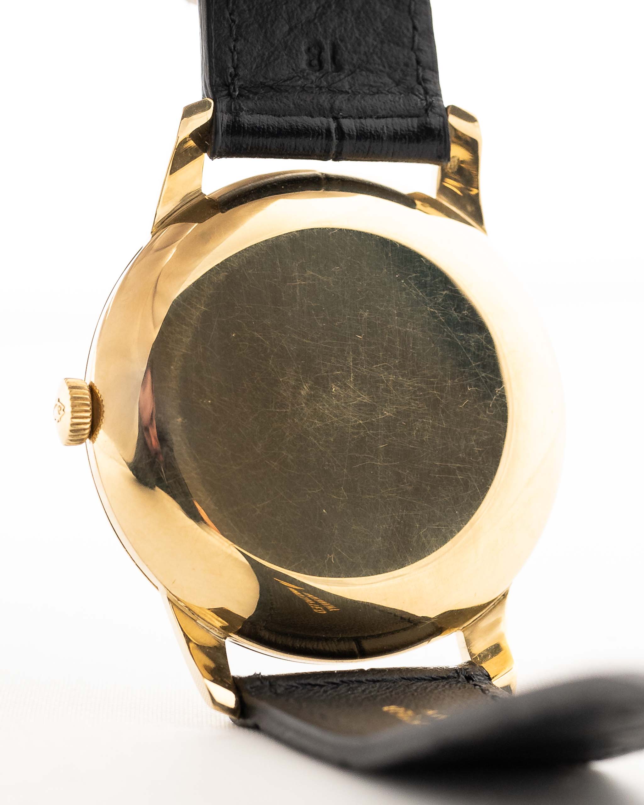 Questo automatico IWC del 1952 si distingue per la cassa sovradimensionata di 36,5 mm in oro giallo 18 carati. Alimentato dal leggendario Calibro IWC 852, uno dei movimenti automatici più rispettati dell'epoca, emana una raffinatezza senza tempo. La cassa in oro giallo 18 carati con anse morbidamente ribassate, abbinata a lancette e indici dauphine, crea un profilo equilibrato ed elegante al polso.