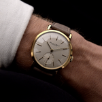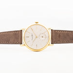 Questo splendido orologio da sera IWC presenta un classico design dei secondi, lancette e indici a bastone dorati, un quadrante pulito di colore argento e monta il celebre movimento calibro 88. IWC è da tempo sinonimo di ricerca della bellezza nella semplicità e questo esemplare esemplifica tale etica con la cassa in oro giallo 18 carati di 36,5 mm di diametro.
