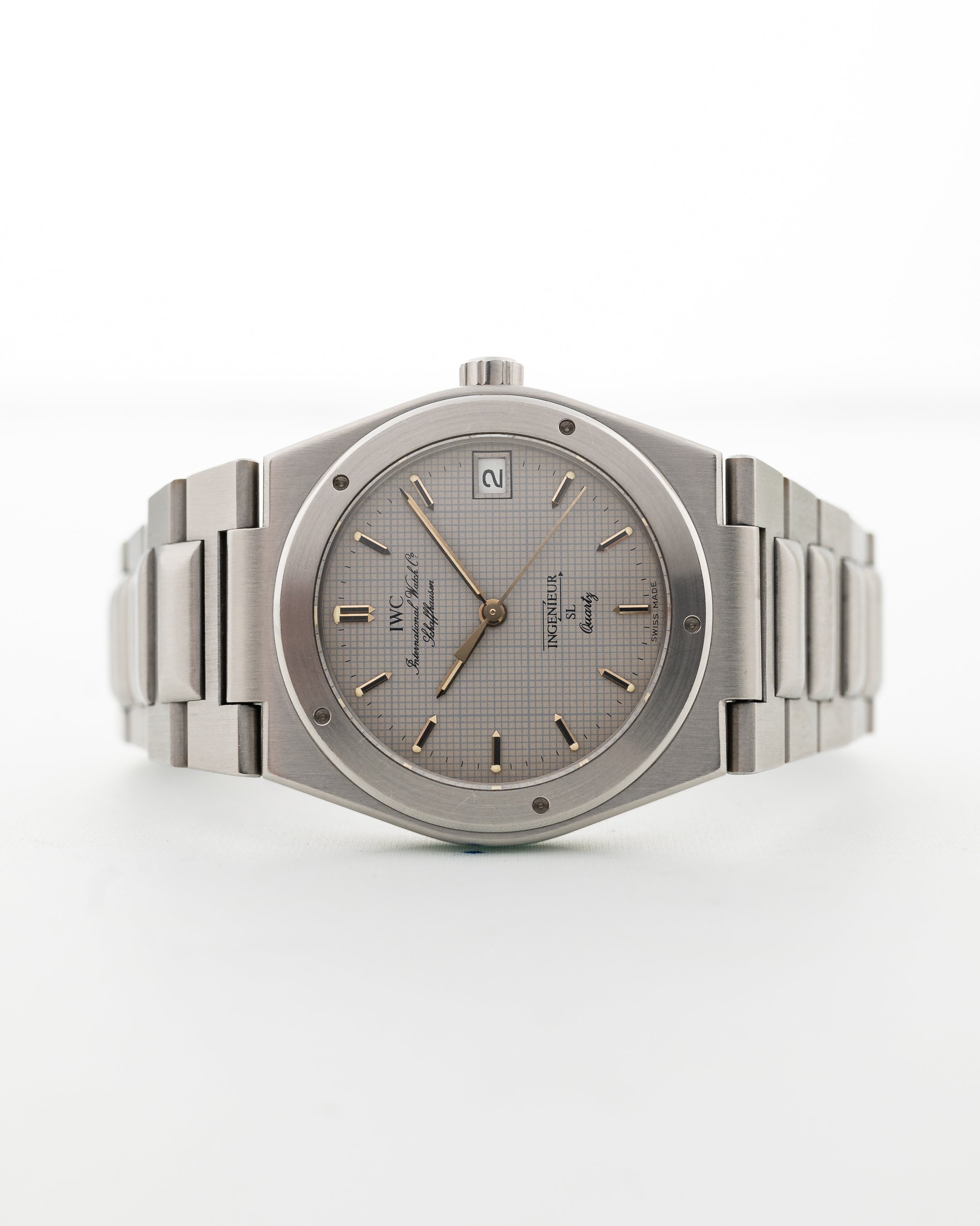 L'Ingenieur SL di seconda generazione ha molto da offrire. Uniformità di design nel bracciale integrato e nella cassa tonneau, dettagli attraenti come la lunetta oblò forata, le lancette e gli indici in oro e la ruota della data abbinata.