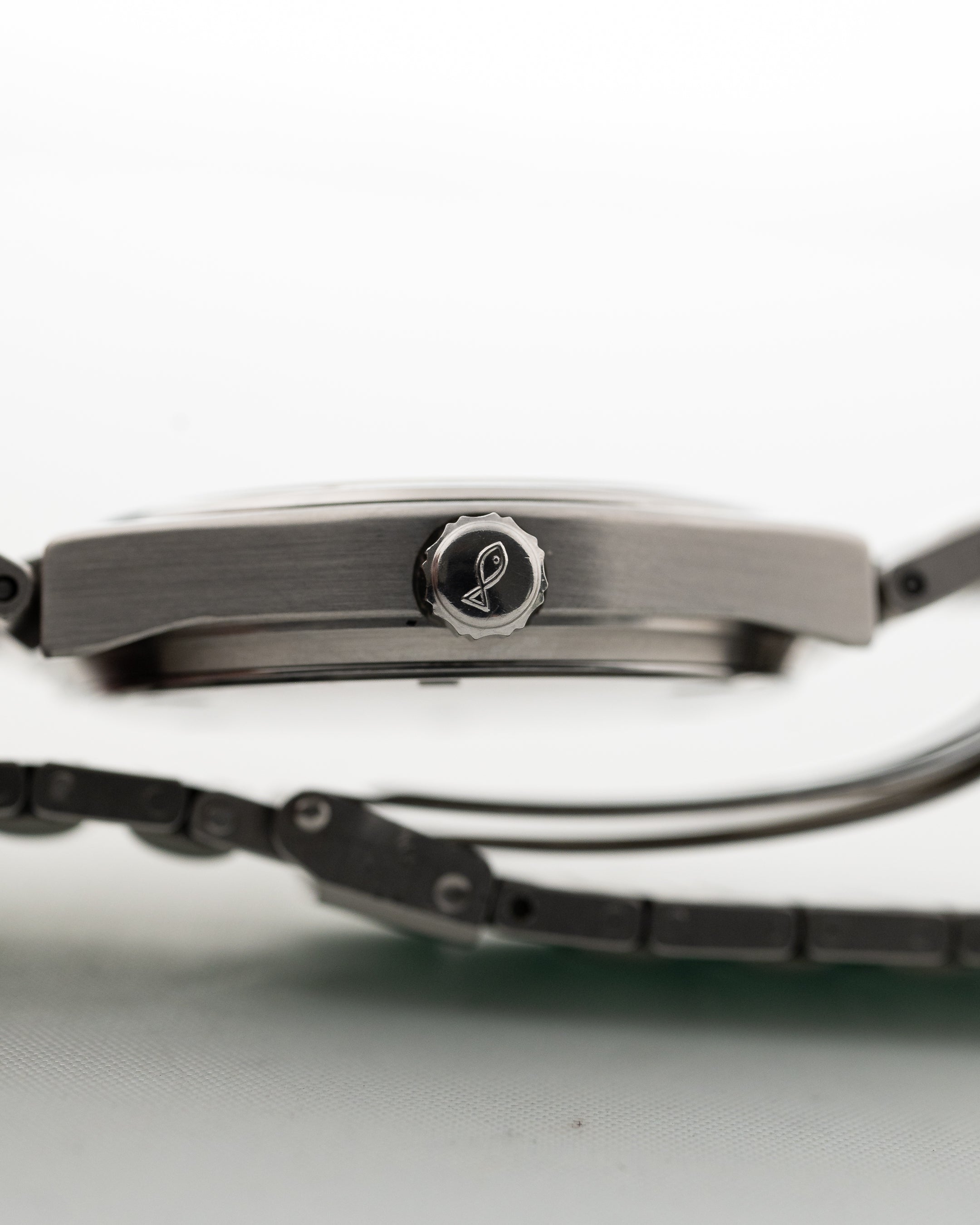 La classica firma IWC sul quadrante grigio con carta millimetrata aggiunge una sorta di raffinatezza studiosa a questo orologio sportivo degli anni '80, decisamente lussuoso ma accessibile, e la parte migliore è che si presenta in condizioni quasi NOS.