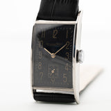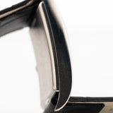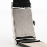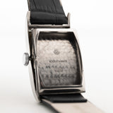 Il nostro esemplare, in acciaio inossidabile e di forma rettangolare con anse dritte, rimarrebbe una costante nelle collezioni di chiunque, soprattutto perché si presenta in condizioni eccezionali e con un rarissimo quadrante nero con numeri arabi.