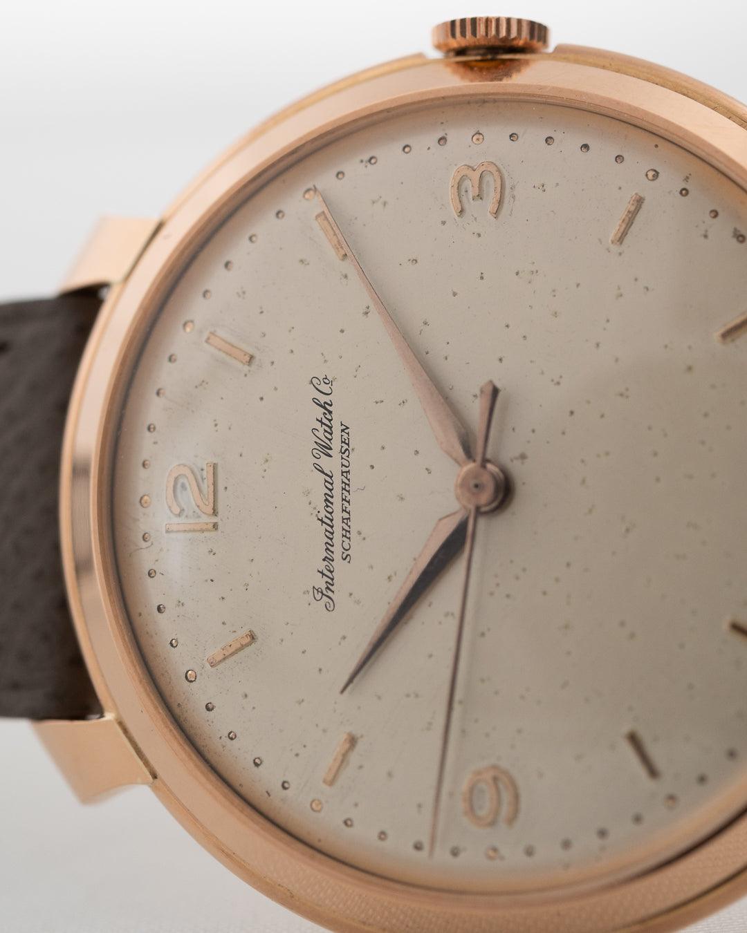 IWC ha prodotto un'ampia varietà di orologi da polso fin dall'inizio, dagli orologi da cerimonia a quelli per l'aviazione. Questo esemplare, in oro rosa 18 carati con anse a pinna di squalo, rimarrebbe una costante nelle collezioni di chiunque, soprattutto perché si presenta in condizioni eccezionali.