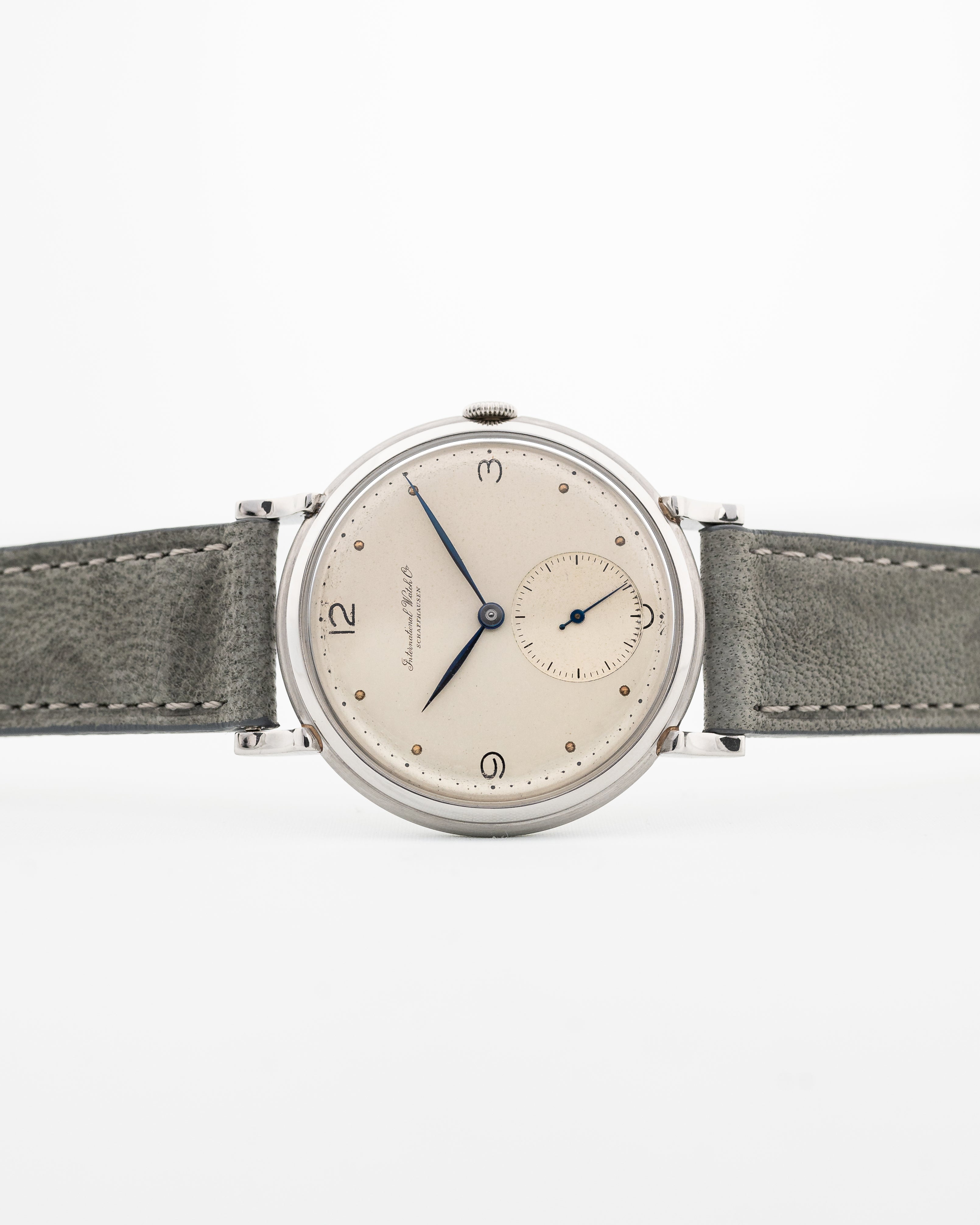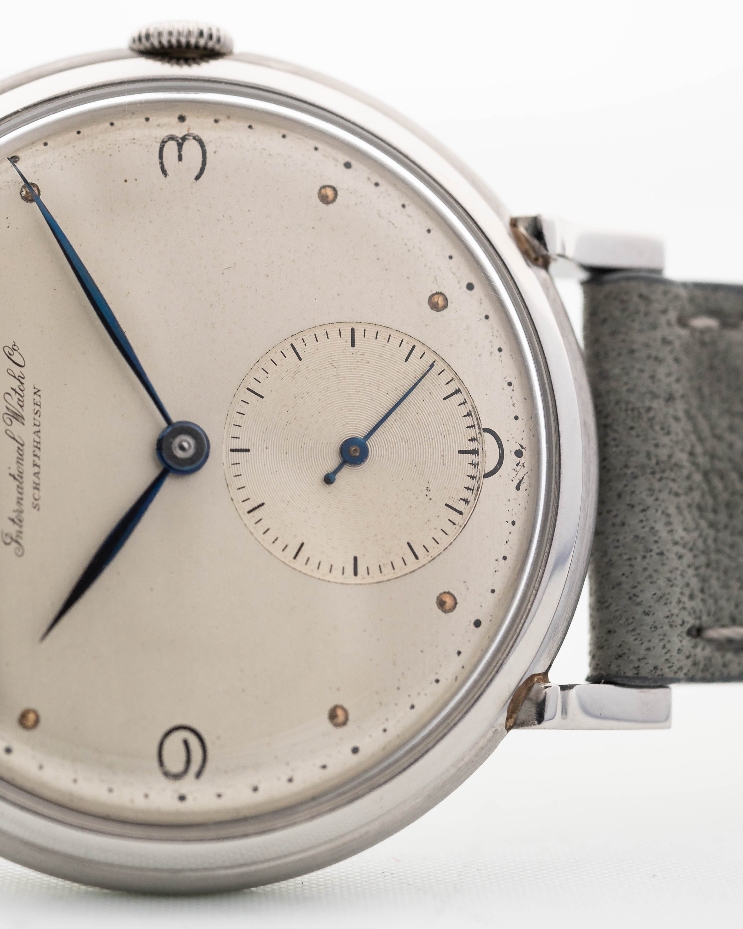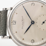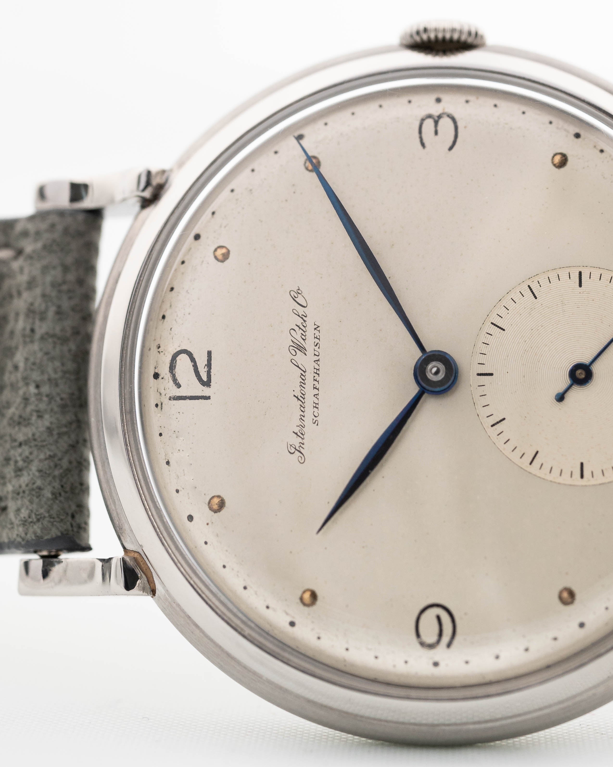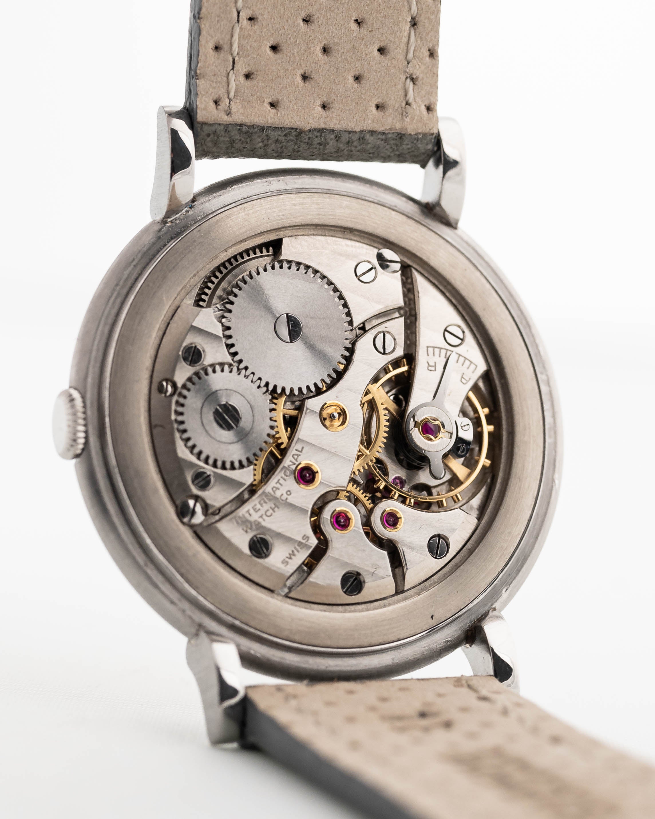Questo splendido orologio da sera Iwc presenta un classico design dei secondi, lancette a foglia azzurrate e un fantastico layout del quadrante Art Déco in formato oversize da 36,5 mm e monta il celebre movimento calibro 88. IWC è da tempo sinonimo di ricerca della bellezza nella semplicità e questo esemplare esemplifica tale etica.