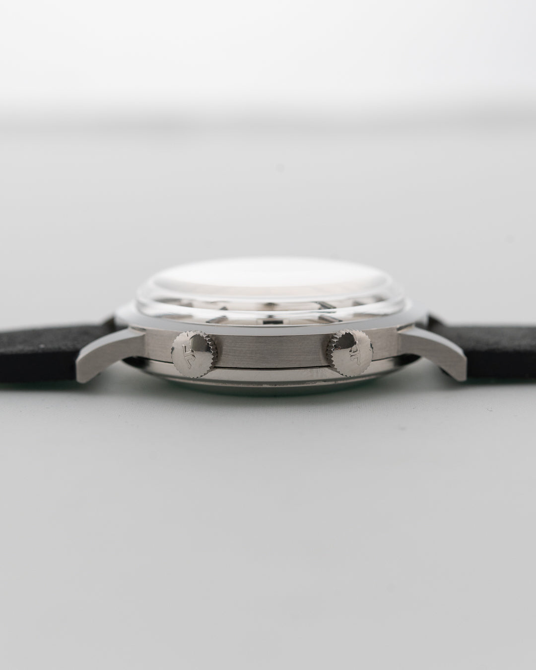 Dopo il Reverso, il Memovox è probabilmente il secondo orologio da polso vintage più riconoscibile reso popolare dalla manifattura. La funzione di allarme non era solo lungimirante, ma anche incredibilmente utile. L'esemplare che vediamo qui è la versione automatica paraurti degli anni '60 e presenta un design pulito con una funzione di data.