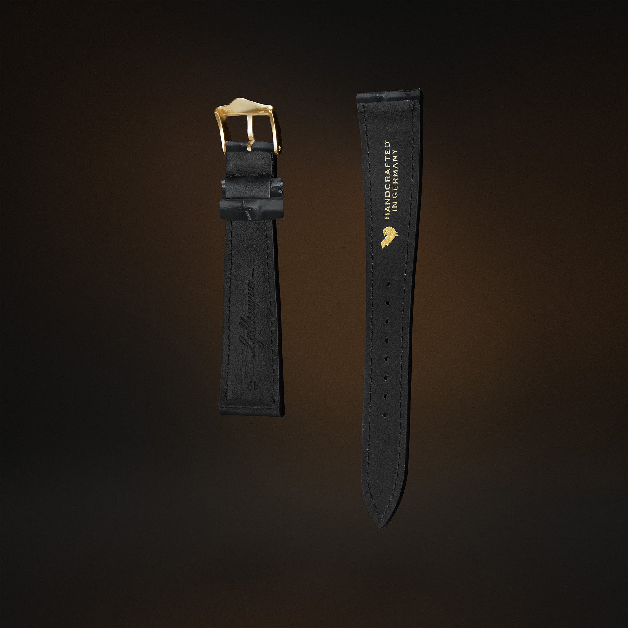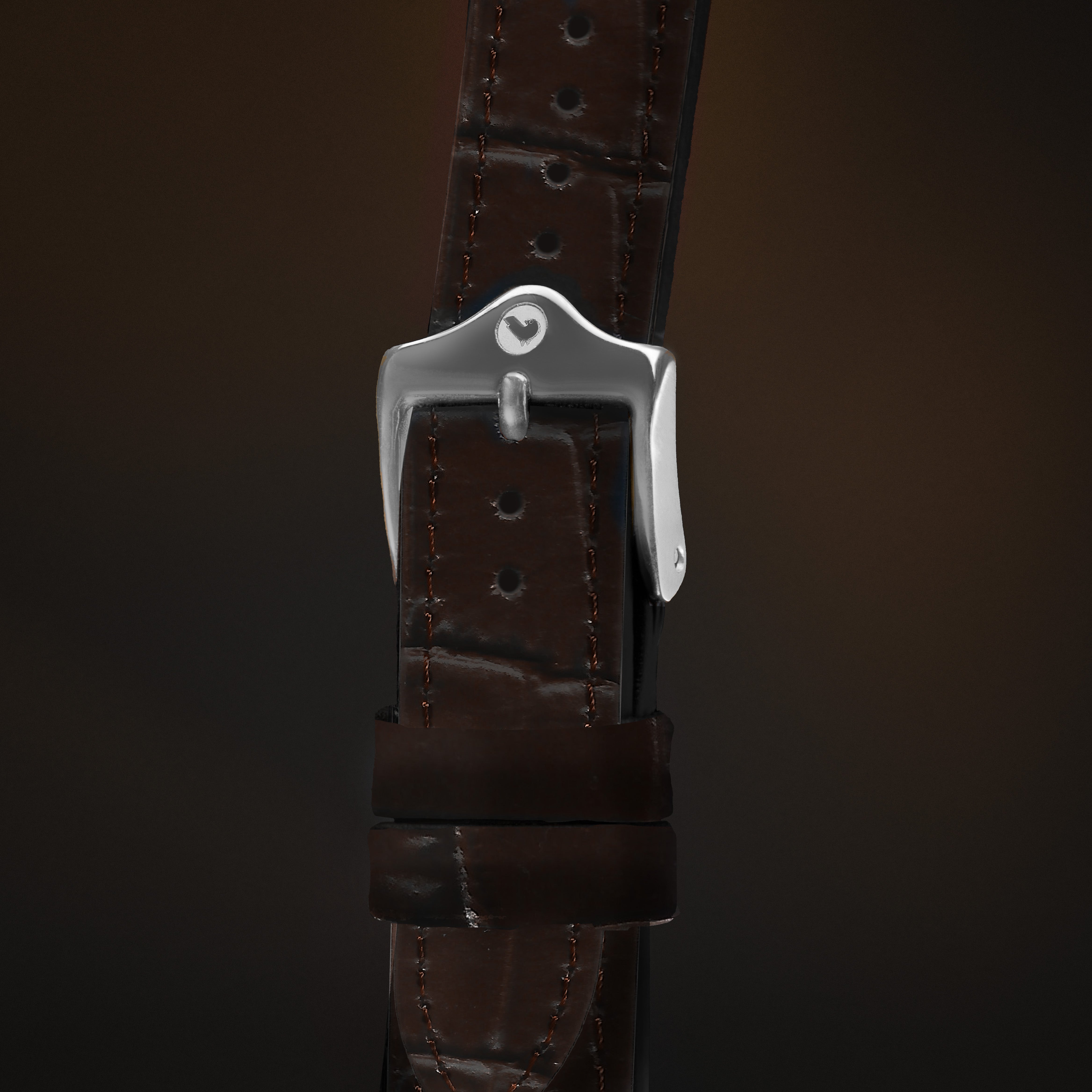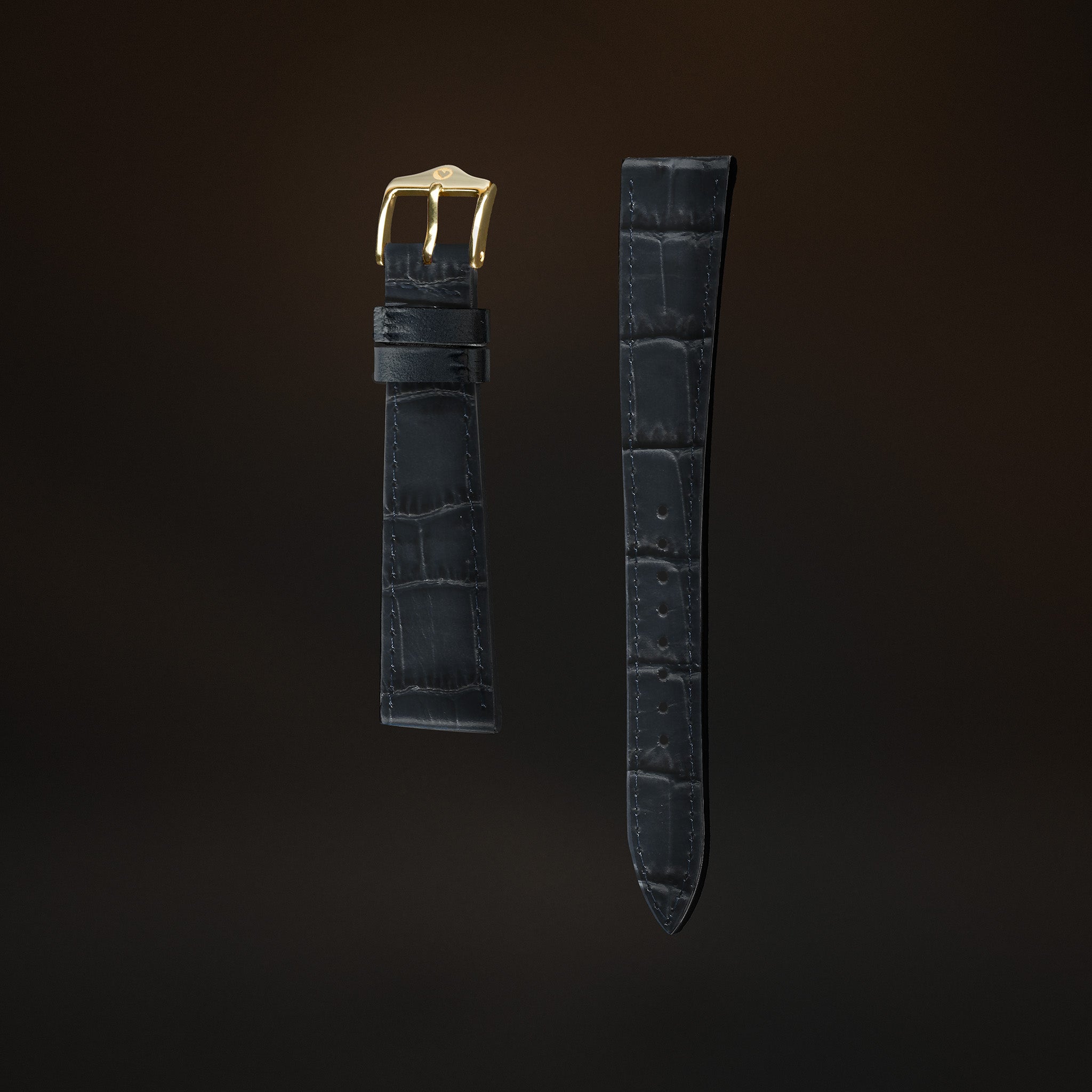 Realizzato in pregiata pelle di vitello italiana con un motivo di alligatore in rilievo, il cinturino offre una texture esotica e lucente, pur essendo sostenibile. È sottile solo 2 mm e si adatta perfettamente al polso fin dal primo utilizzo. L'esclusiva forma affusolata è un complemento discreto e fa da cornice al suo classico Orologio Vintage.