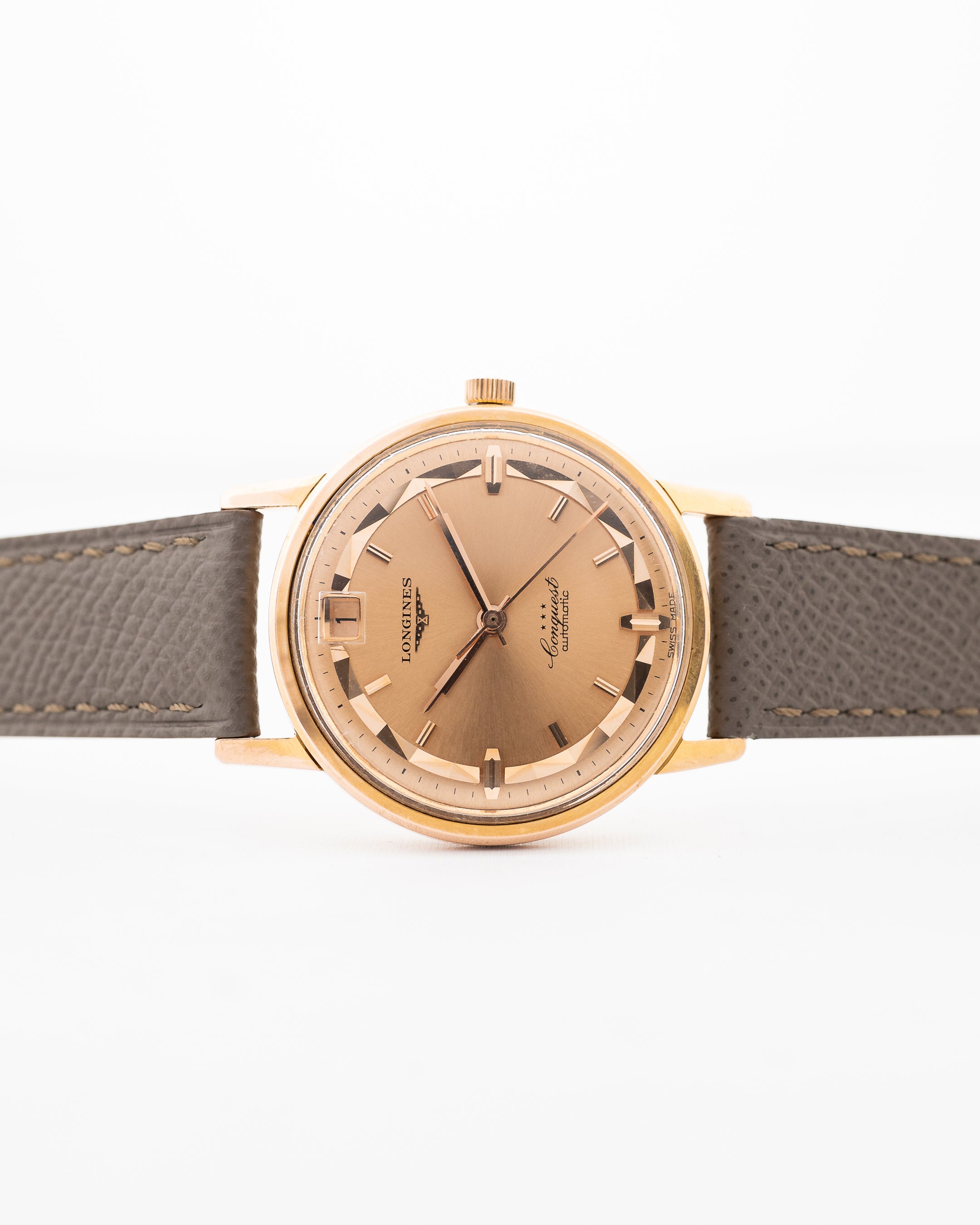 Questo Longines Conquest, con la sua cassa in oro rosa 18 carati, è un fantastico esempio di orologio da sera. Presenta una minuteria sfaccettata tra i bastoni e la minuteria e inoltre un quadrante pie-pan. Il modo in cui questo quadrante gioca con la luce è assolutamente sorprendente.