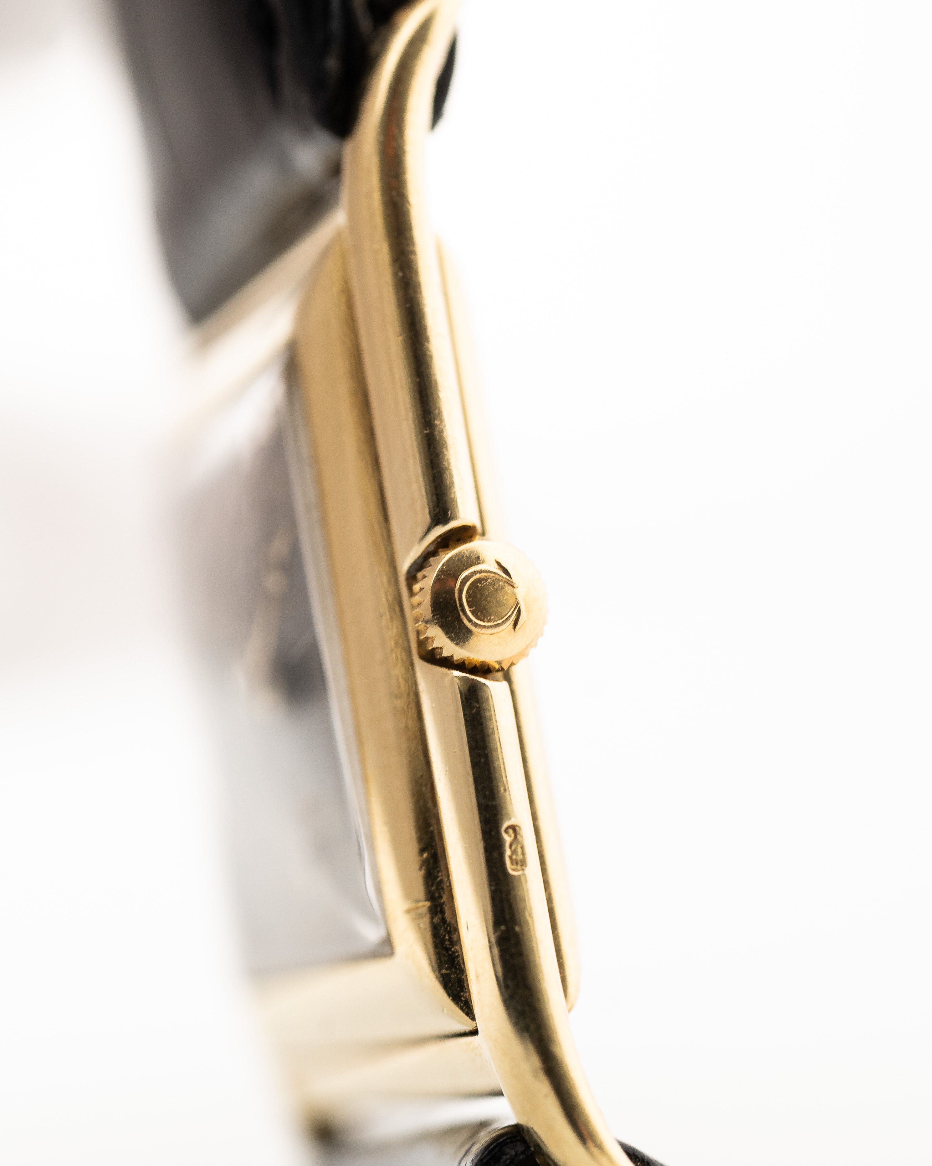 Qui può vedere un affascinante orologio da abito rettangolare Art Déco realizzato da Omega negli anni Trenta.