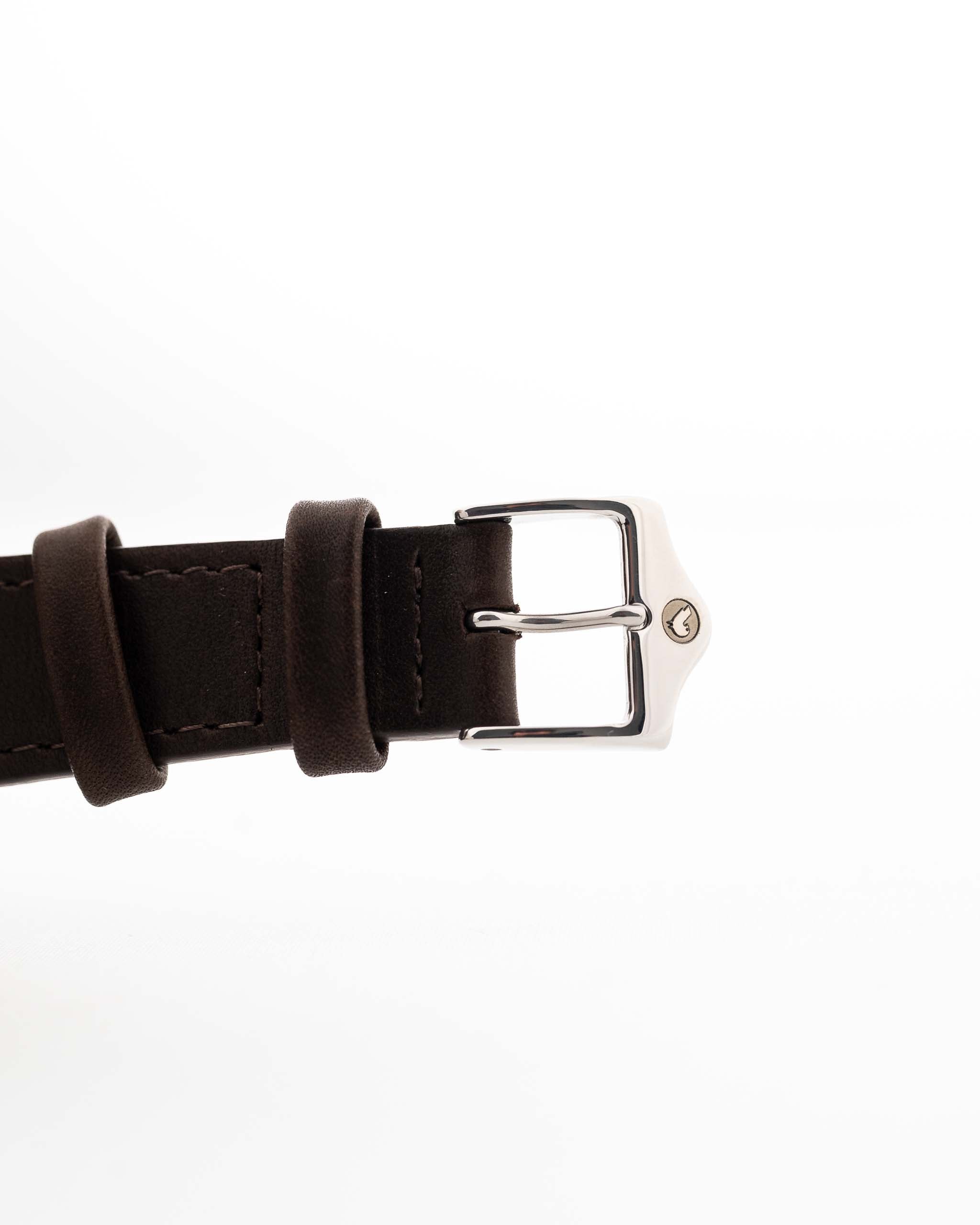 Il quadrante, un tono di rame intatto, ha sviluppato una patina calda e uniforme, che gli conferisce un'incredibile profondità e autenticità. Le lancette a bastone in acciaio azzurrato aggiungono un tranquillo contrasto e un lampo di eleganza sotto la luce - un dettaglio che non si dimentica una volta visto in movimento.