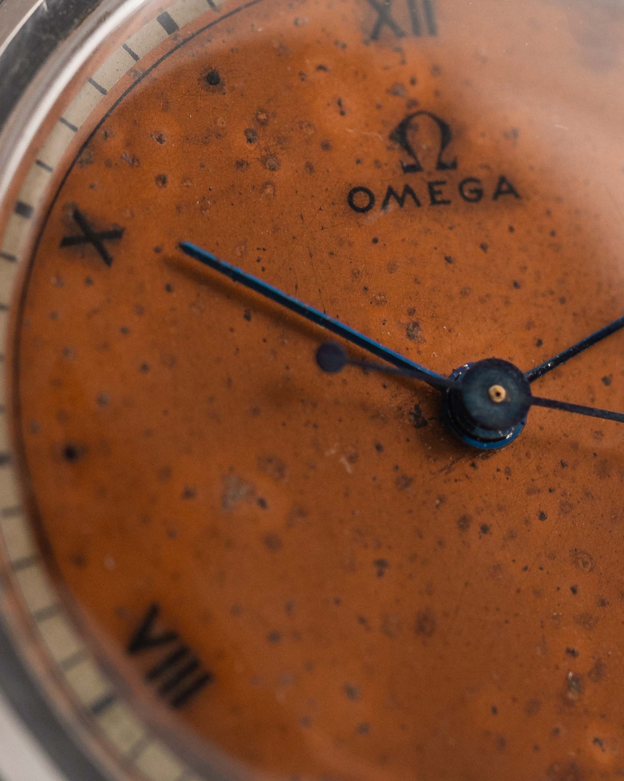 Omega "Big Scarabeo" in rame, 1939 - Anse architettoniche. Fascino in rame. Un Omega precoce e senza tempo.