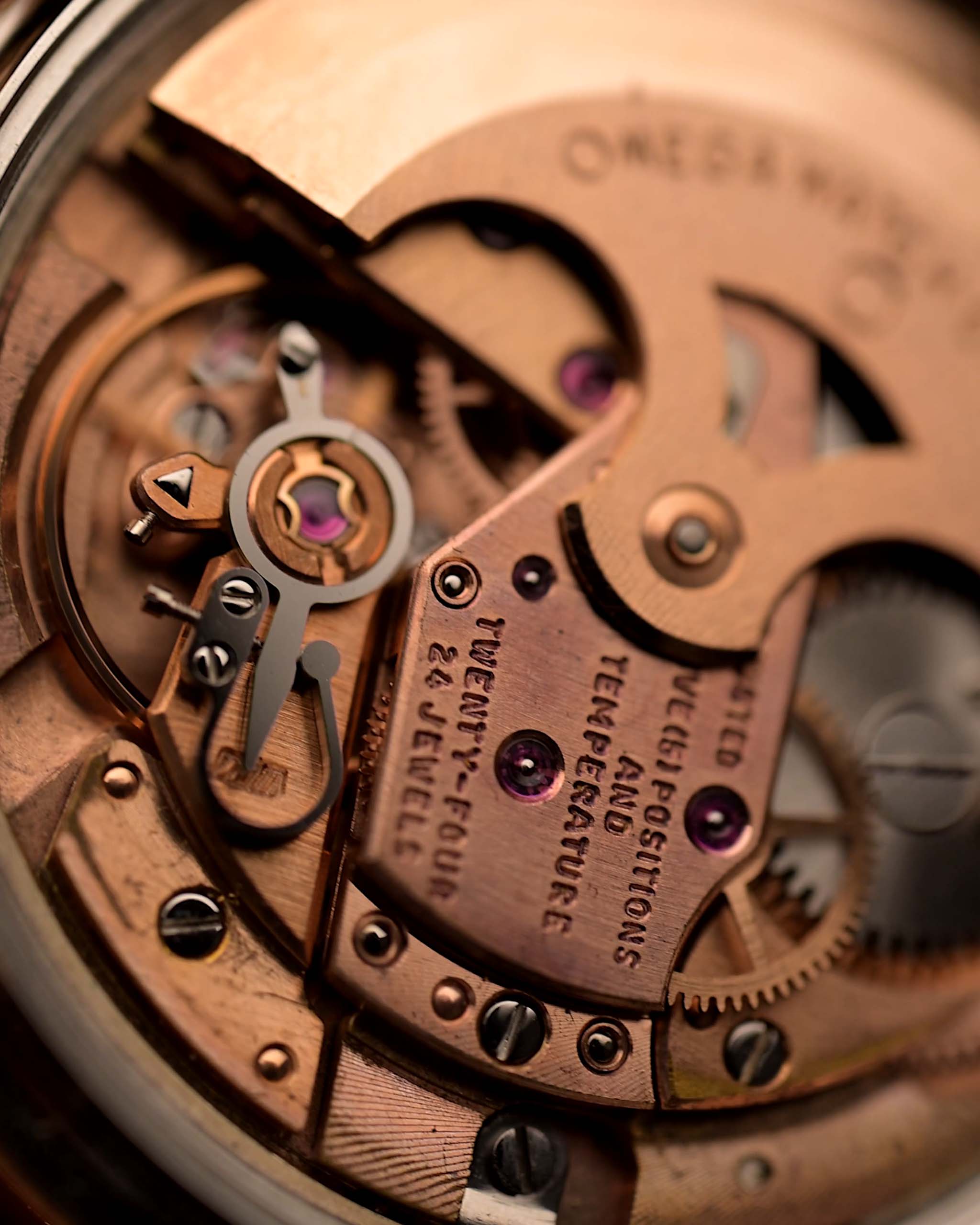 La cassa da 35,5 mm placcata in oro rosa mostra una geometria nitida e contorni eleganti, bilanciati dal caratteristico quadrante pie pan con finitura sunburst argento - un segno distintivo inconfondibile dei primi Constellation. Gli indici sottili a bastone con intarsio in onice e le lancette dauphine sfaccettate completano il quadro, catturando l'ideale di metà secolo di raffinata sobrietà.