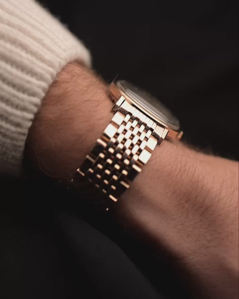 Alimentato dal Calibro 561 automatico con certificato di cronometro, questo orologio combina affidabilità e lusso tranquillo. E la vera ciliegina sulla torta: un raro bracciale abbinato placcato oro rosa "Beads of Rice", che completa il pezzo con la grazia tipica di Omega.