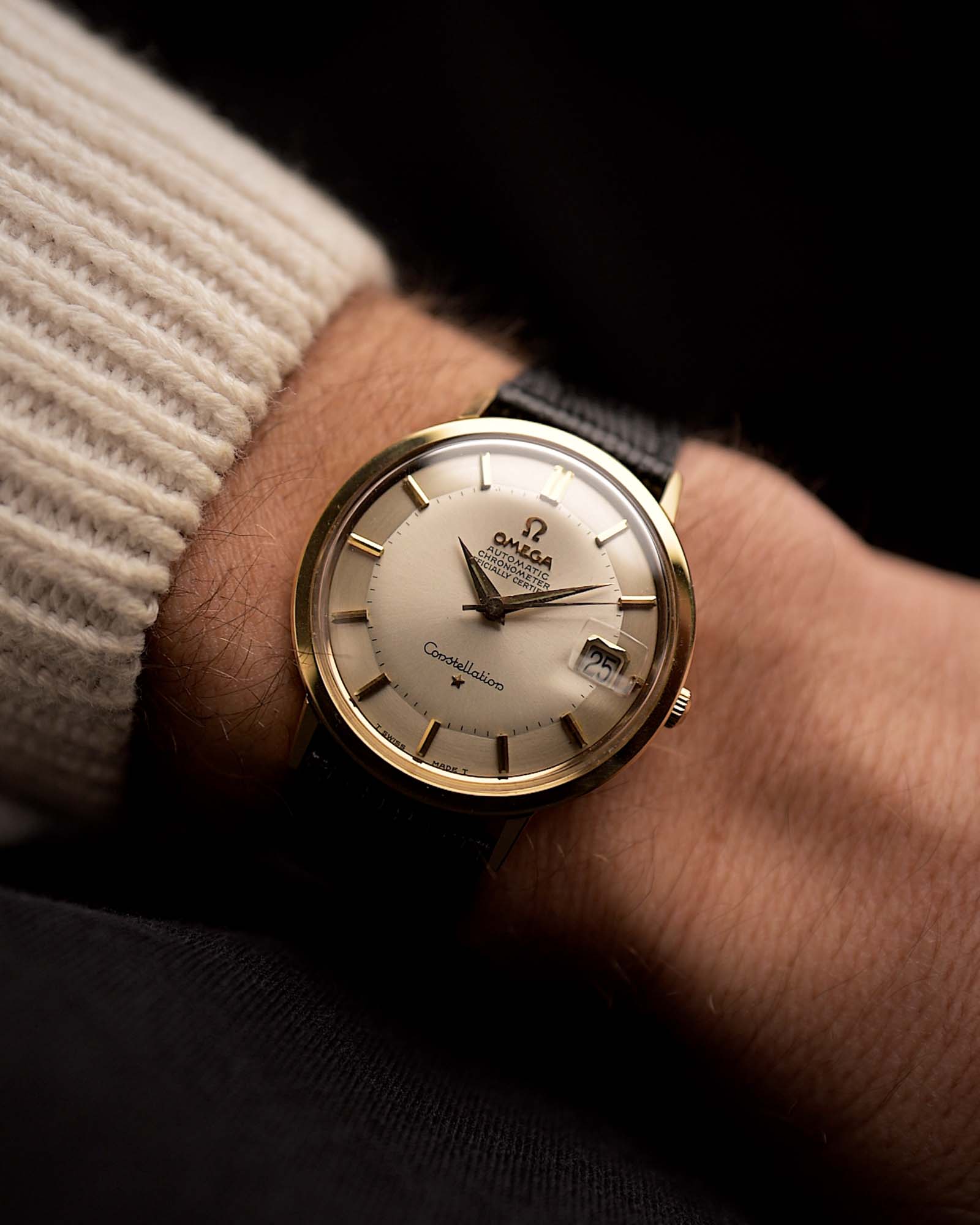 Questo Omega Constellation Ref. 168.004 del 1966è un esempio classico di raffinatezza vintage. Con lasua cassa in oro giallo 18 carati da 35 mme le anse angolate, trasmette una tranquilla sicurezza e una raffinata maestria artigianale.
