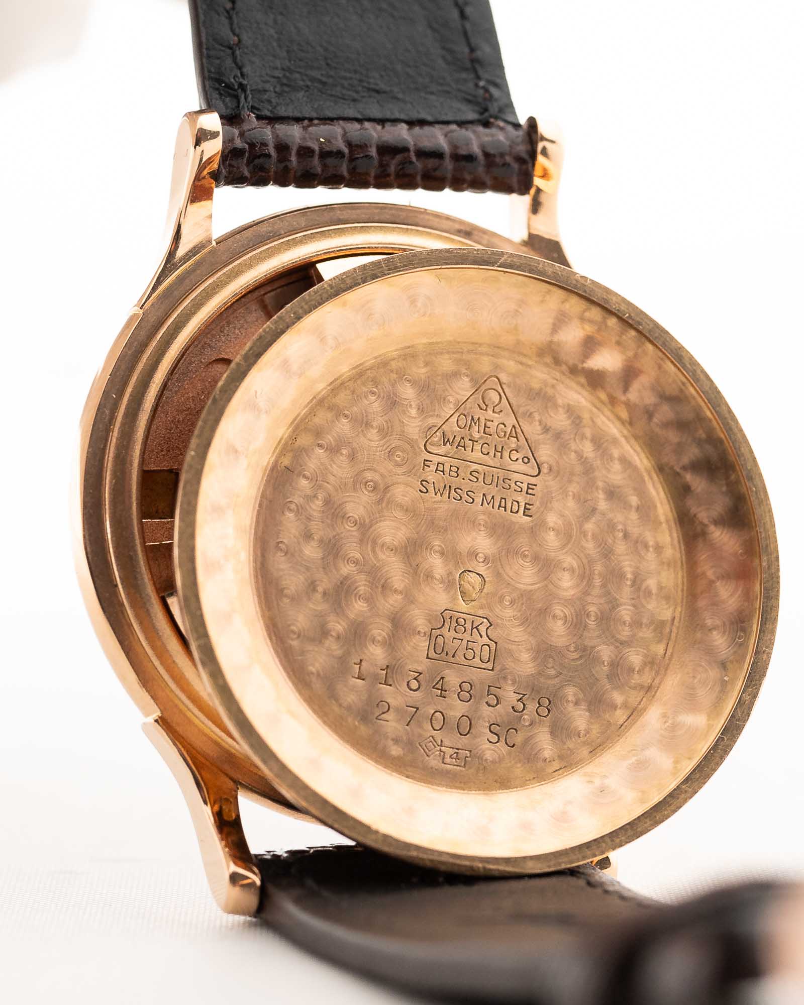 Le caratteristiche anse rivolte verso il basso conferiscono un tocco architettonico, mentre il fondello avvitato e la corona Omega originale completano il tutto con fascino originale.