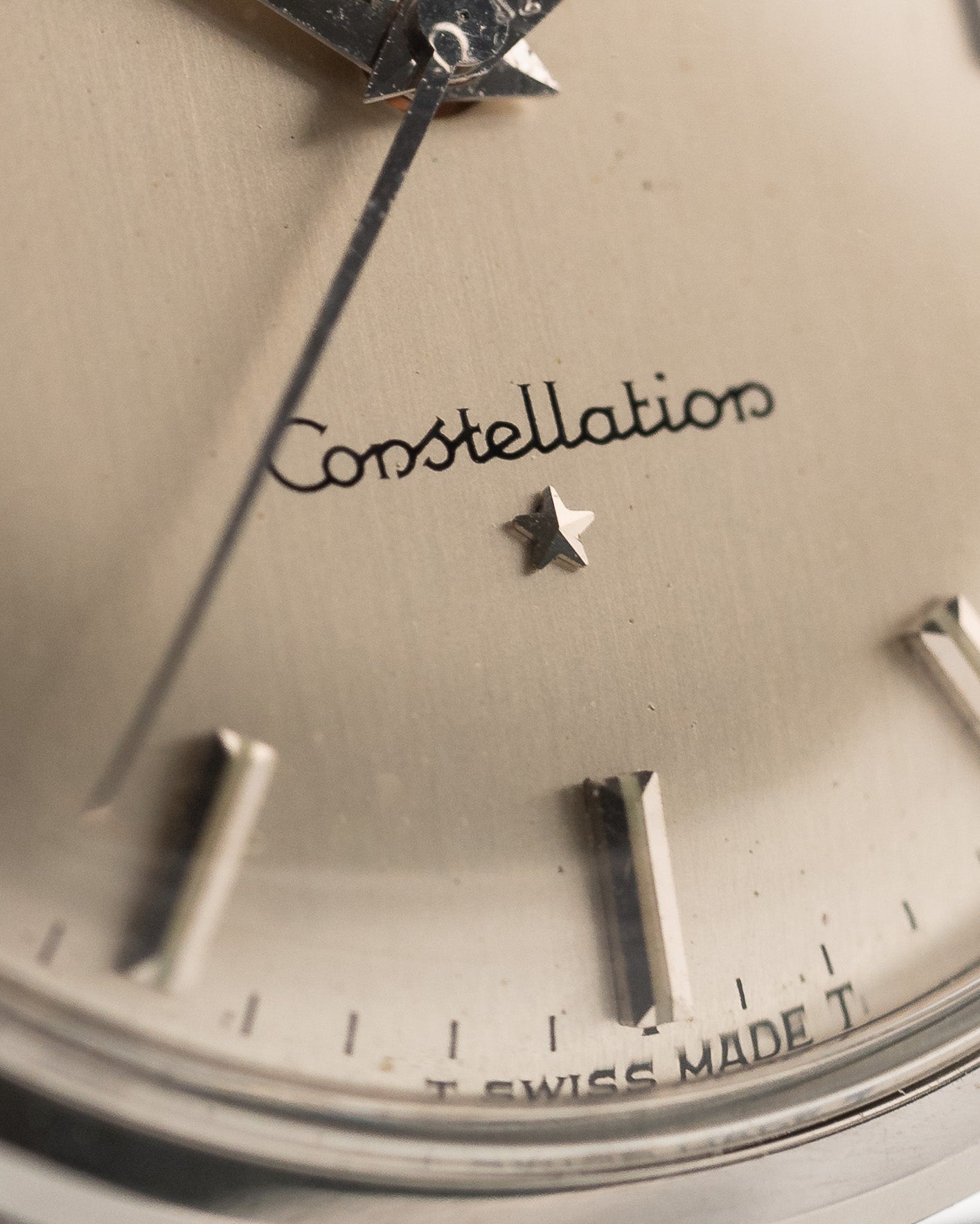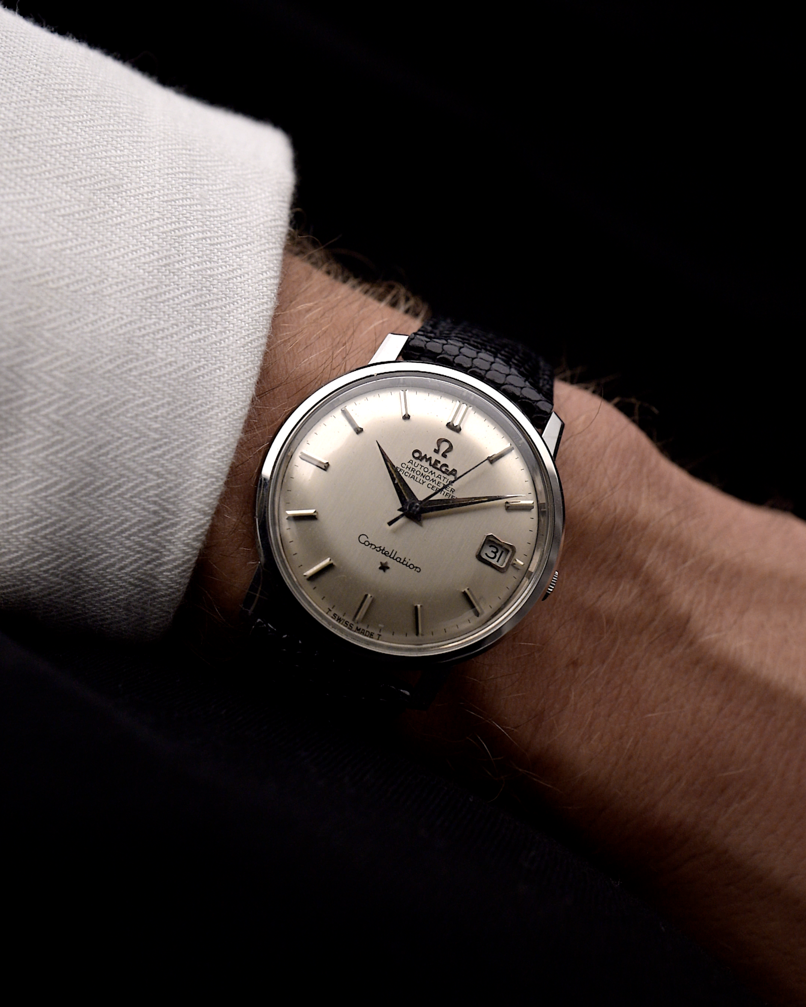 Ben proporzionato, semplice e classico, questo Constellation è caratterizzato da un fondello a vite, dal calibro 564 del cronometro automatico Omega e da grandi anse leggermente tornite.