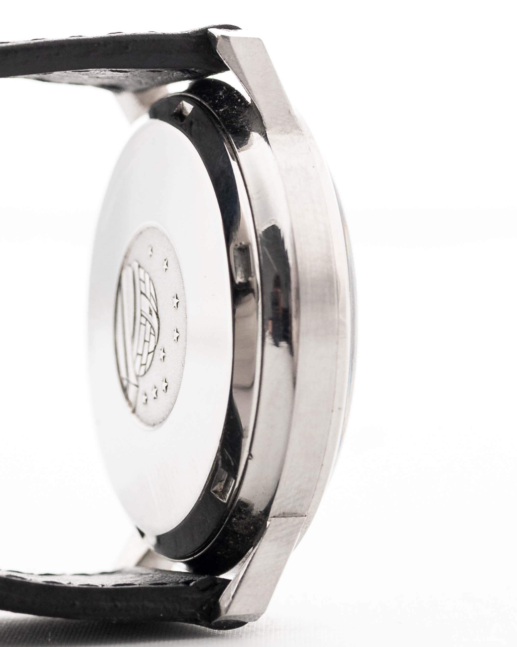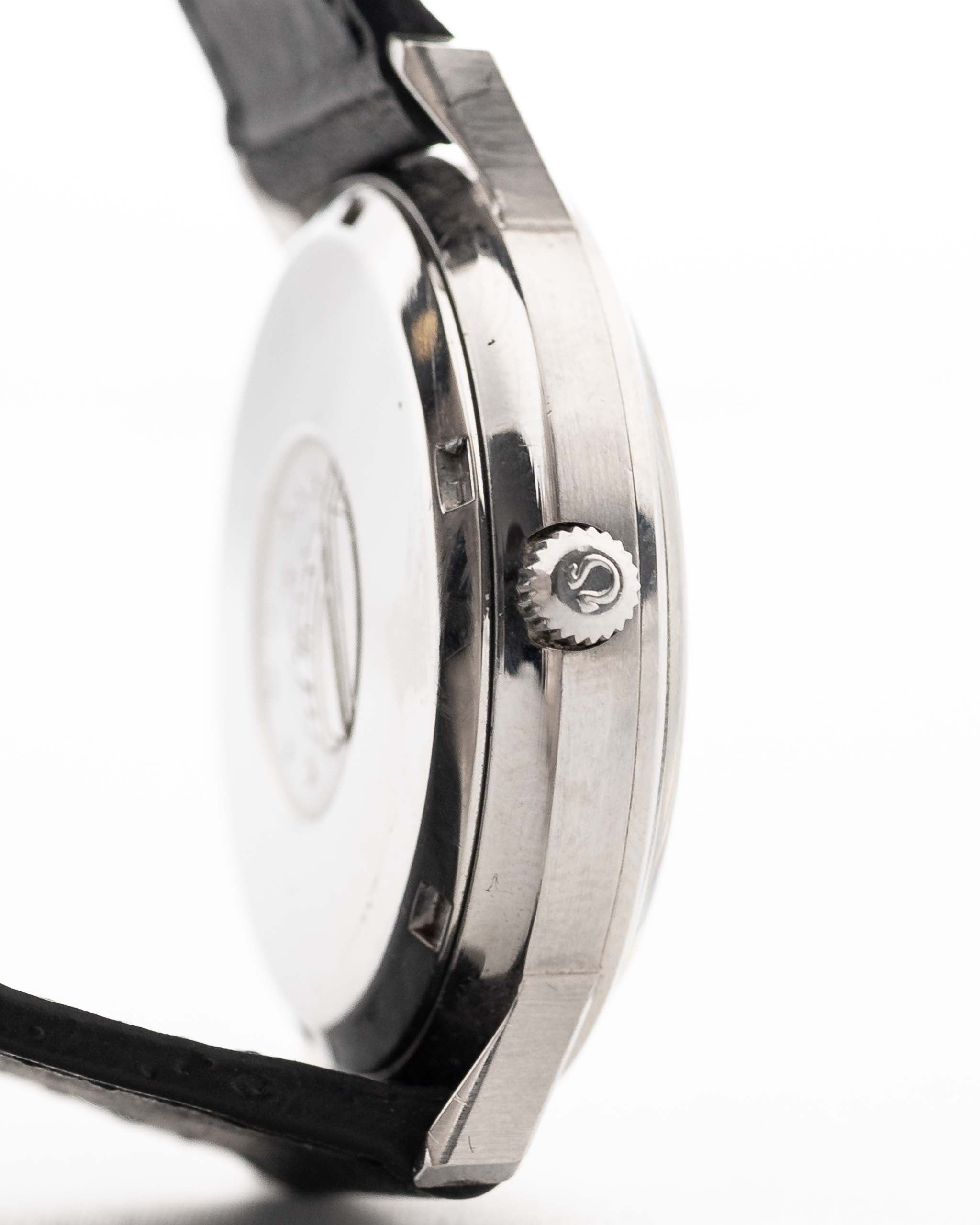 La cassa in acciaio inossidabile da 35 mm conserva gli spigoli vivi e le proporzioni originali, ospitando il leggendario Calibro 564automaticocronometro di Omega, un movimento celebre per la precisione e l'affidabilità.