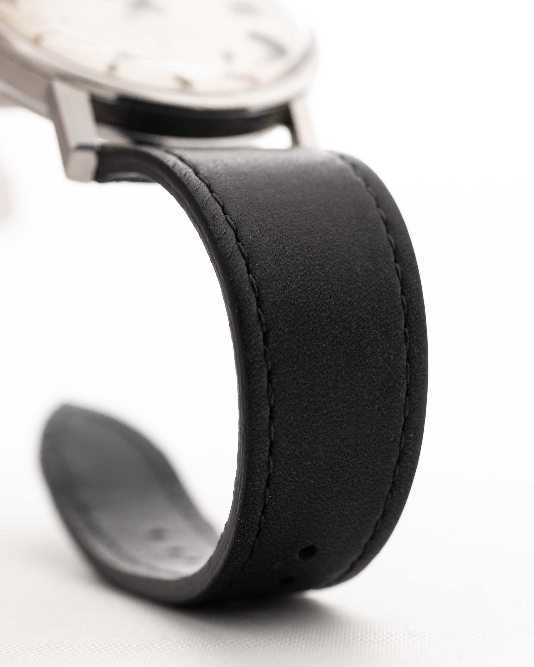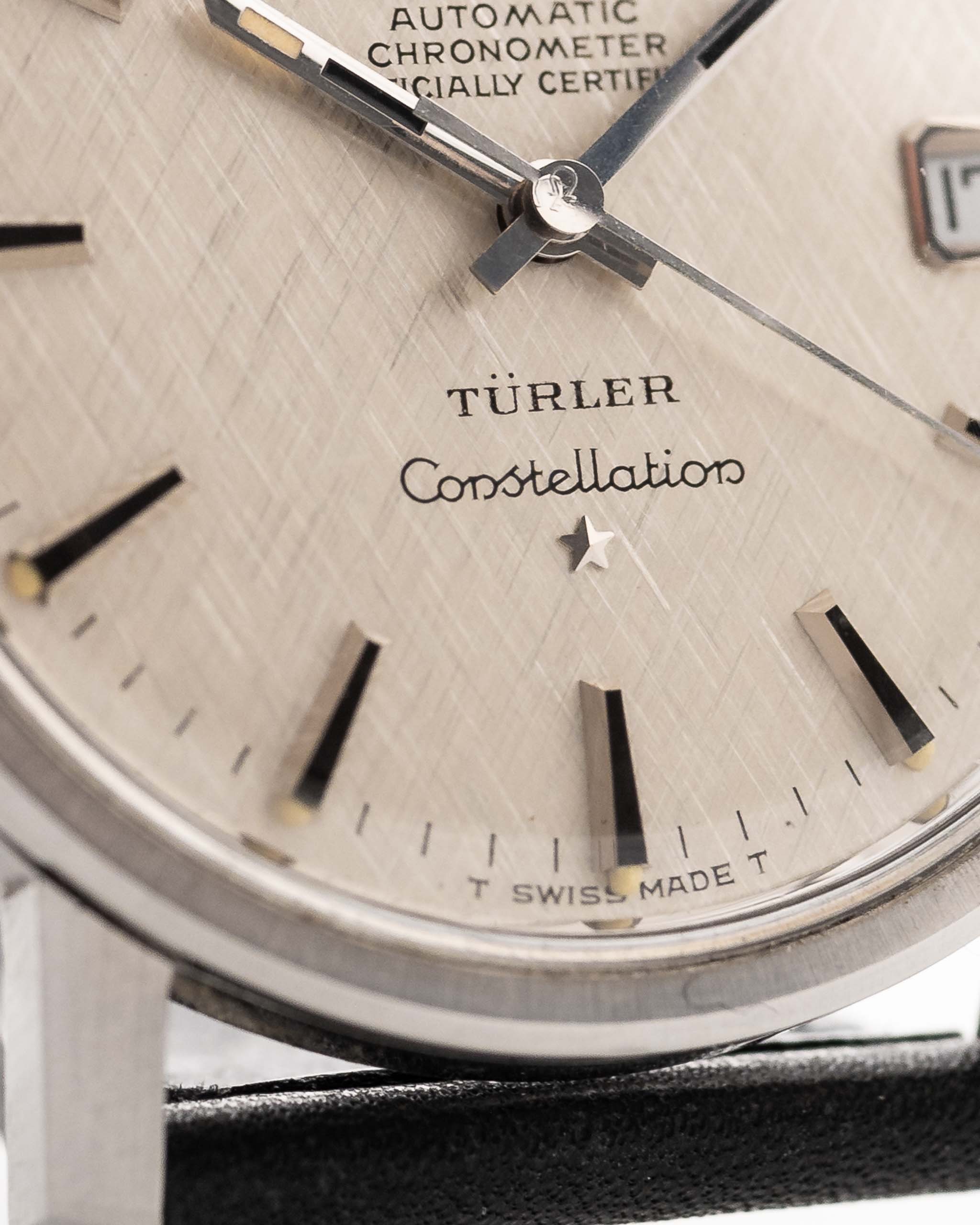 Questa rara Ref. 168.018 degli anni '60 abbina un quadrante argentato con texture di lino, splendidamente conservato, con audaci indici a bastone neri, che offrono una ricca profondità e una sottile raffinatezza. Ancora più eccezionale è la doppia firma "Türler" - un marchio discreto del rinomato rivenditore svizzero Türler, riservato a pezzi speciali ordinati in boutique.