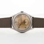L'Omega Cosmic è stato introdotto nel 1947 ed è rimasto in catalogo fino al 1956 come l'orologio più prestigioso del catalogo del marchio. Questo esemplare è una referenza 2471-1 in acciaio inossidabile, misura 35 mm e ospita il movimento Omega Calibro 27 DL PC basato su Lemania.