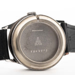 Orologio vintage Omega Siringa dorata del 1939, cassa in acciaio inossidabile da 33 mm, quadrante nero dorato, movimento a carica manuale, cinturino in pelle nera al polso