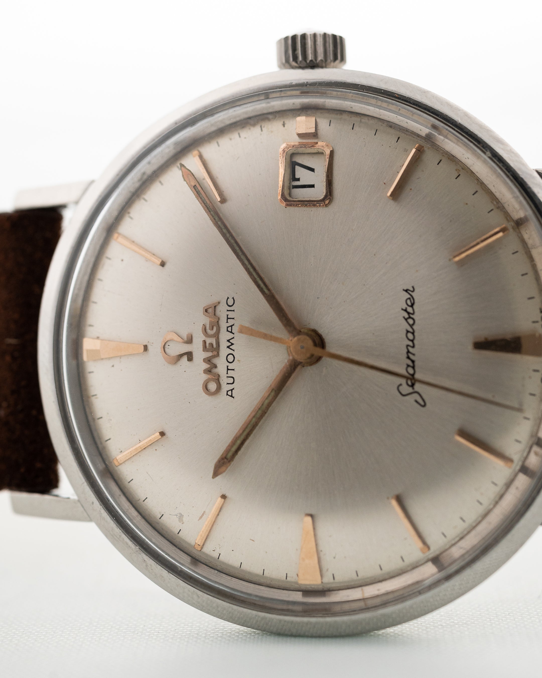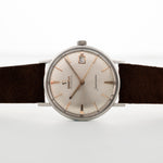 Qui può vedere un affascinante Seamaster realizzato da Omega nel 1960. Presenta una cassa in acciaio inossidabile da 34 mm con anse dritte. Presenta anche un bellissimo quadrante argentato e pulito con indici a bastone in oro rosa.