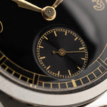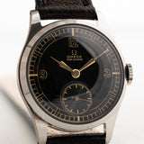Trovare un Omega degli anni '30 in ottime condizioni è difficile, ma trovarne uno con un bellissimo quadrante nero lucido con numeri arabi color oro e lancette a siringa abbinate è quasi impossibile. Questa bellezza presenta una cassa in acciaio inossidabile con un raro quadrante nero ed è disegnata in stile Art Déco.