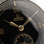 Questo pezzo specifico è ancora più raro perché la cassa è stata realizzata dal casemaker inglese Dennison e l'orologio stesso è stato prodotto in Svizzera da Omega con la configurazione del quadrante "Fab. Suisse".