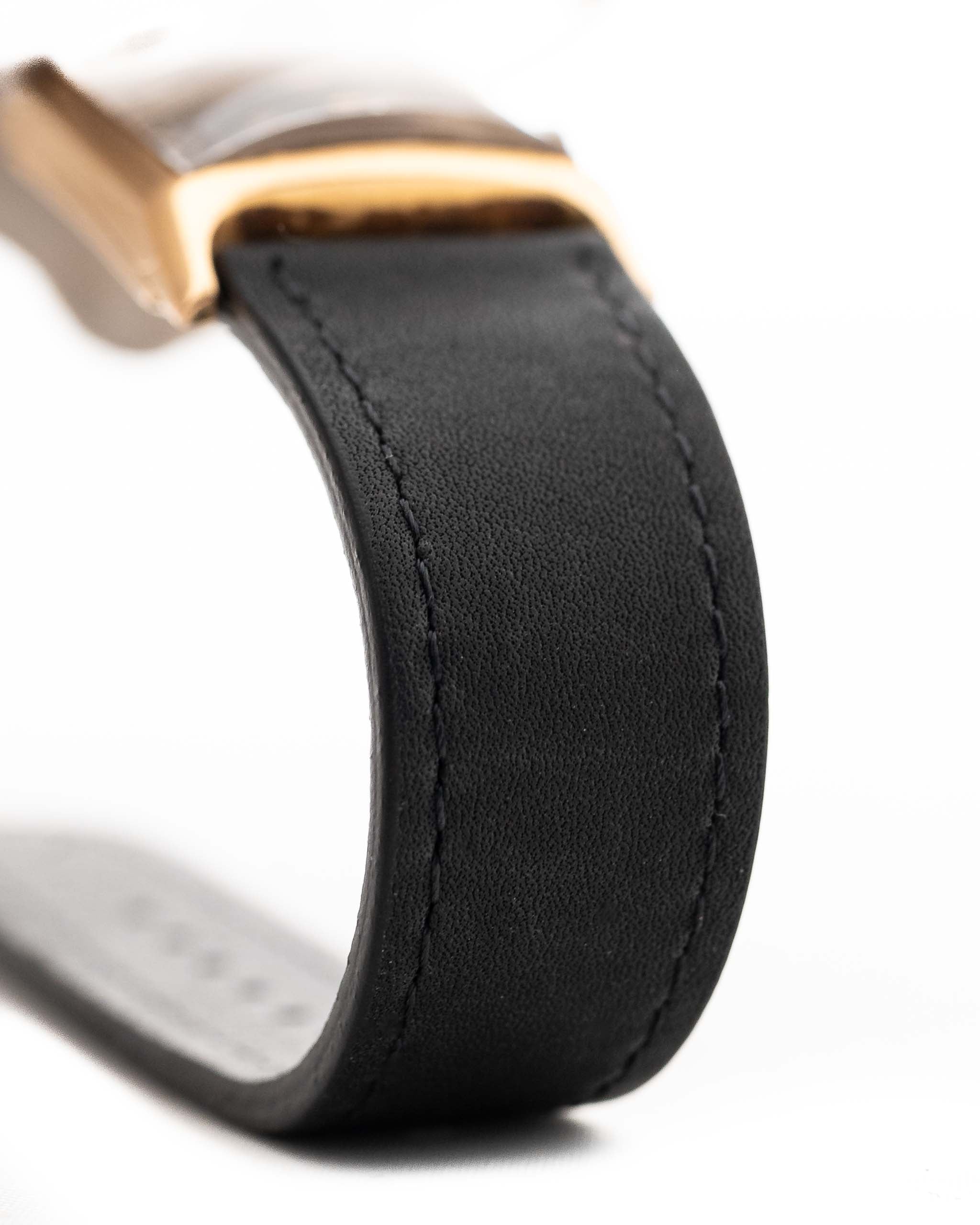 This rare Omega Tank from 1944 is a poetic embodiment of Art Deco sophistication. Its sleek, 18k rose gold rectangular case offers a bold yet refined profile, wearing larger than its dimensions suggest — an elegant presence on any wrist.