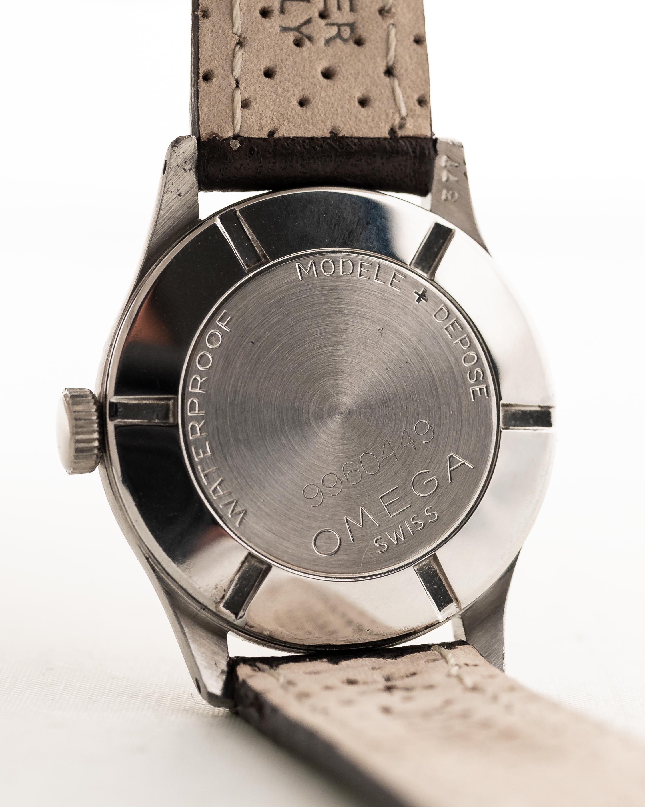 Trovare un Omega degli anni '40 in ottime condizioni è difficile, ma trovarne uno con un bellissimo quadrante bicolore con numeri romani e lancette a siringa in acciaio azzurrato è quasi impossibile.