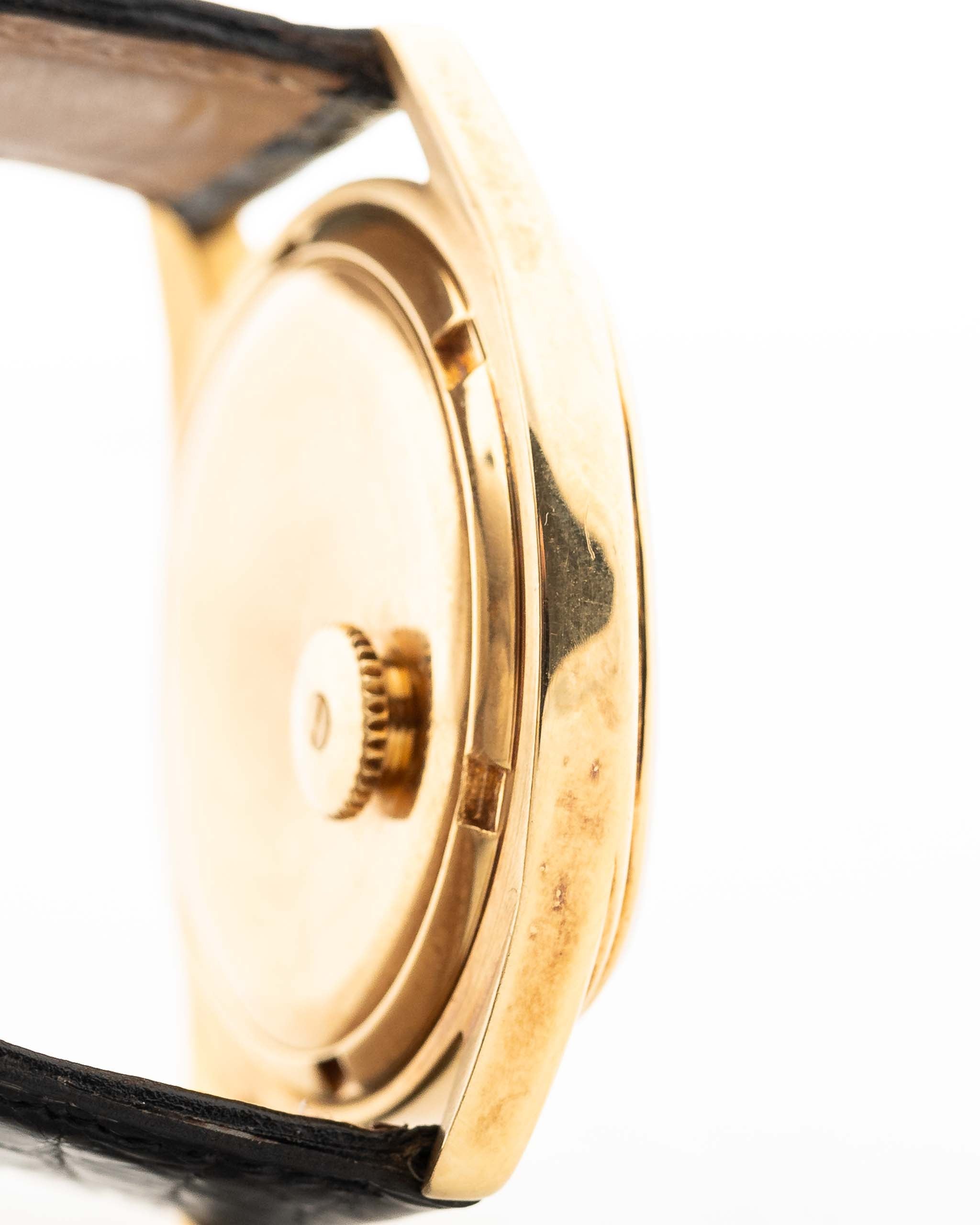 Il quadrante blu marino strutturato del sigma è un punto di forza in sé: ricco di tonalità, splendidamente bilanciato e ornato da indici e lancette in oro applicati. Irradia una raffinatezza sobria, il tipo di lusso tranquillo che definiva l'etica del design di Patek Philippe in questo periodo.