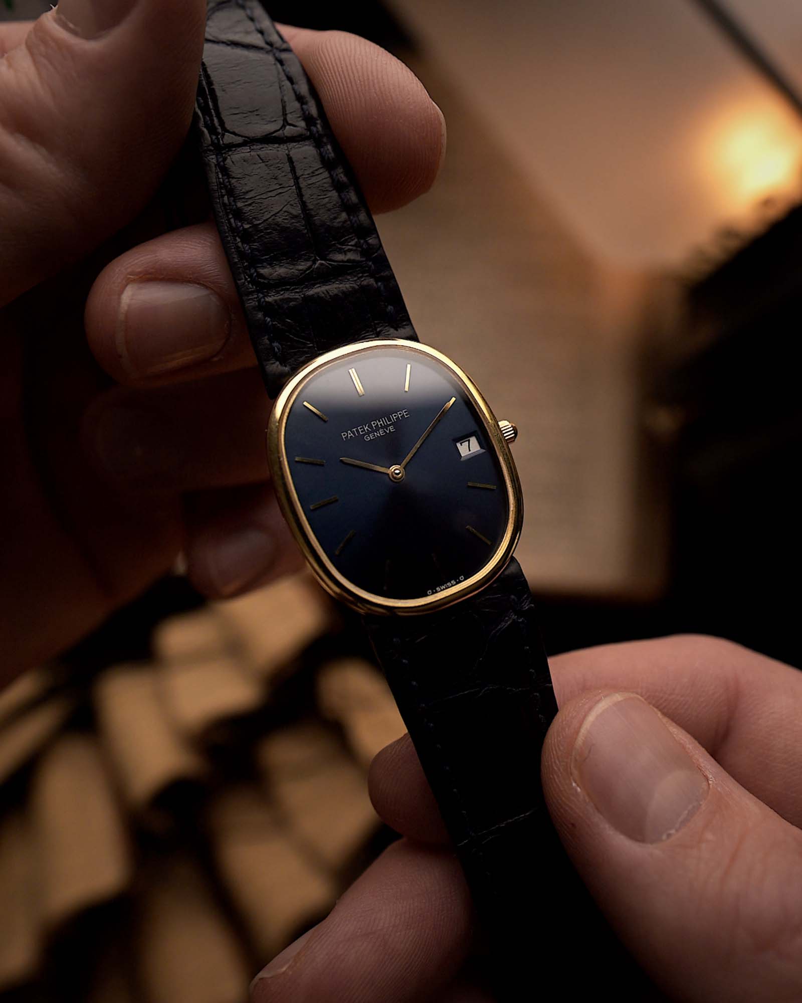 Patek Philippe 3788J Golden Ellipse — Eleganza blu soleil (anni '80)