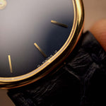 Questo modello Ref. 3788J degli anni '80 è presentato in condizioni eccellenti, con un impeccabile quadrante blu sunburst sigma racchiuso in una sottile cassa in oro giallo 18 carati. Abbinato al cinturino in pelle Patek Philippe originale e alla fibbia in oro 18 carati, mantiene un aspetto puro e raffinato al polso.