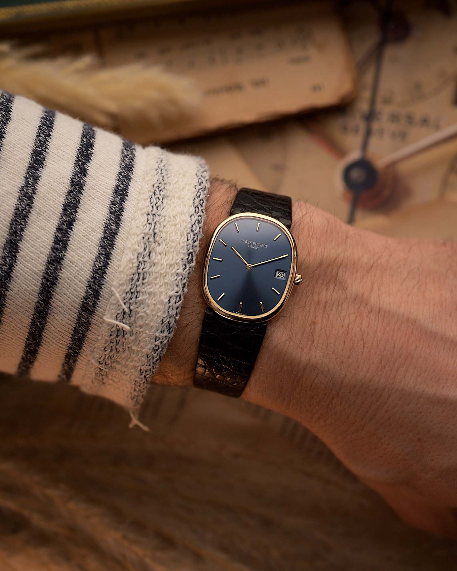 Patek Philippe 3788J Golden Ellipse — Eleganza blu soleil (anni '80)