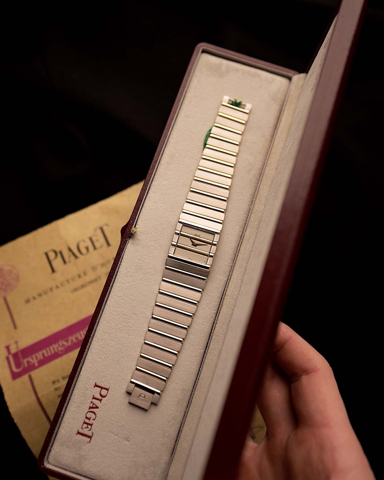 La parte migliore è che viene fornito in un set completo con la sua scatola originale Piaget e i documenti. Per i collezionisti che desiderano qualcosa di raro, indossabile e inconfondibilmente Piaget, questo è il prodotto ideale.