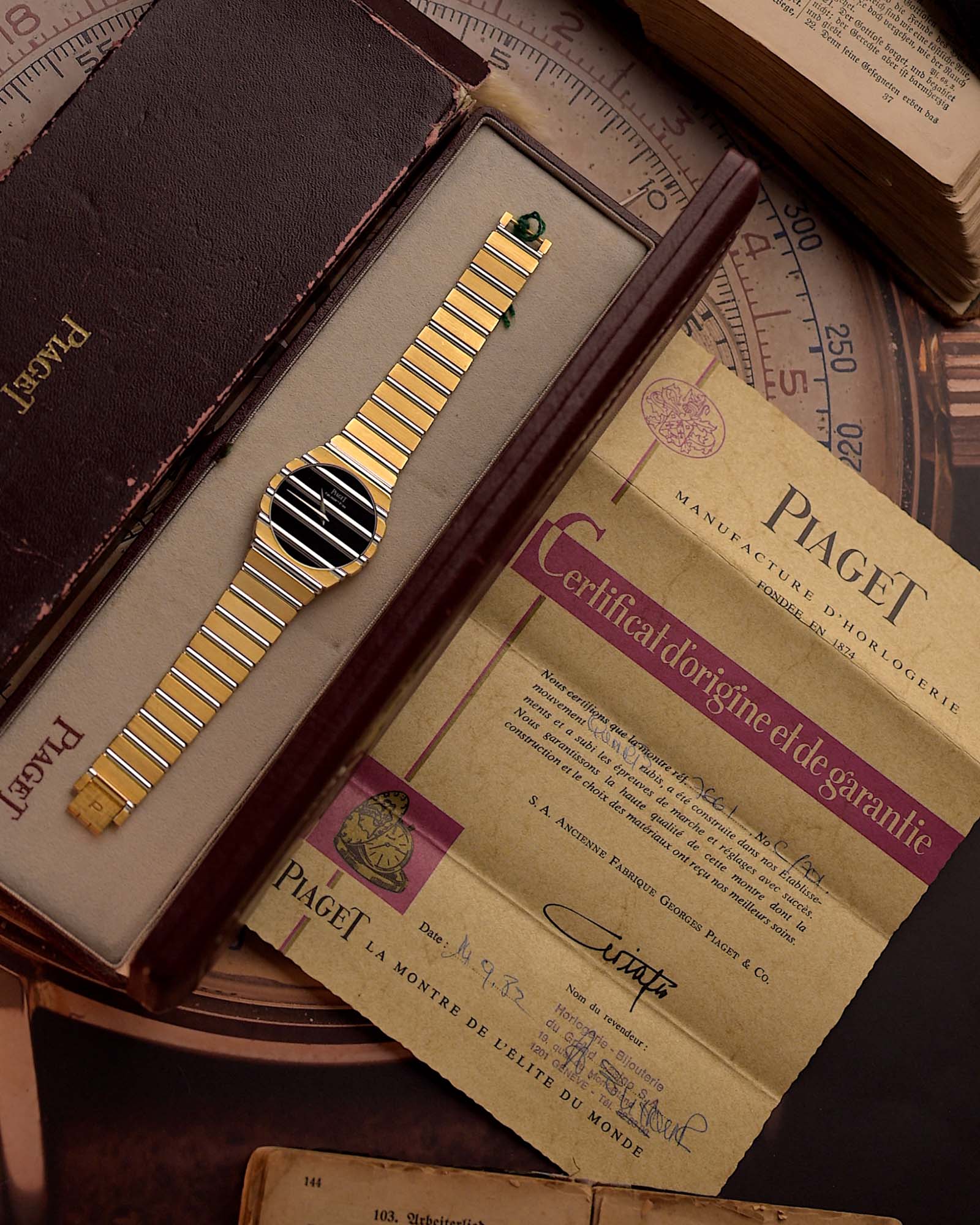 La parte migliore è che viene fornito in un set completo con certificato originale Piaget del 1982 e scatola Piaget.