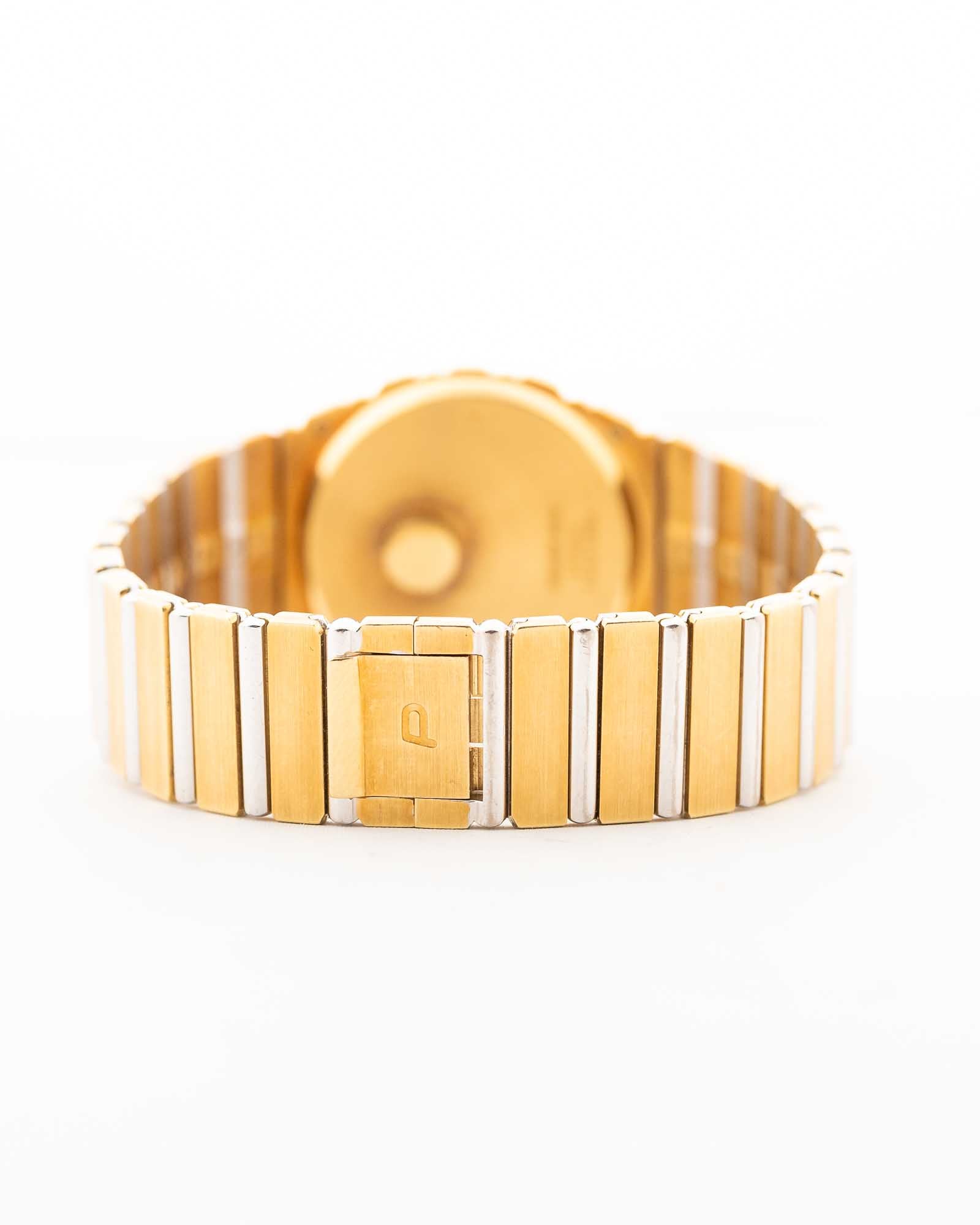 Il Piaget Polo Ref. 7661 C 701 rappresenta l'espressione più audace del lusso degli anni '80: unaversione Jumbo da 34 mm realizzata interamente in oro giallo e bianco 18 carati, con un quadrante in onice impeccabile che aggiunge un tocco di opulenza raramente riscontrabile, anche tra i modelli Polo.