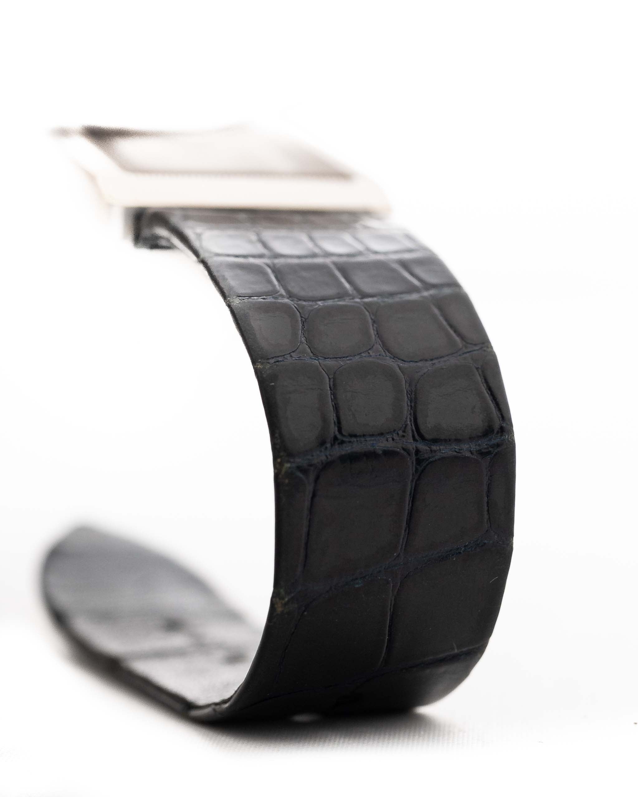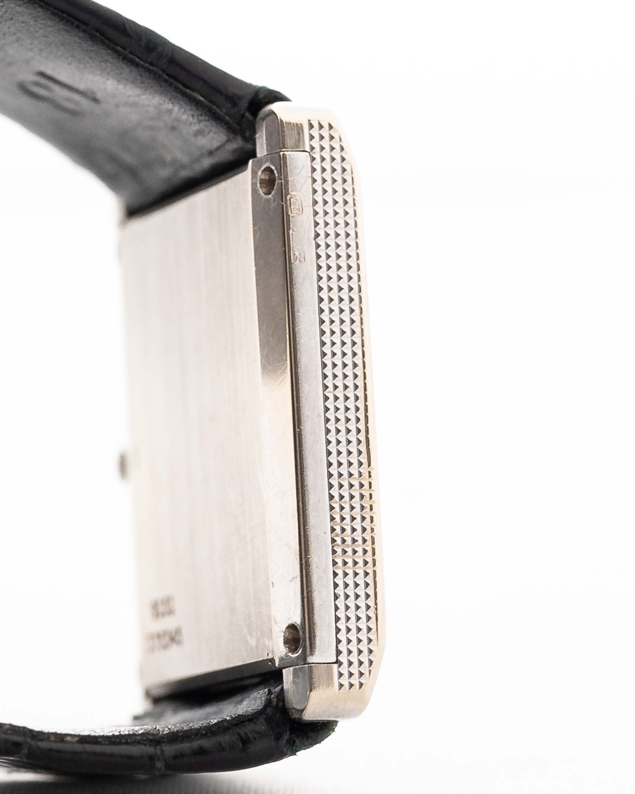 Pochi orologi incarnano l'eleganza degli anni Settanta come questo Piaget Ref. 9151 - un'elegante creazione a forma di carro armato realizzata in oro bianco massiccio 18 carati e dotata di un quadrante in Onice naturale che brilla di profondità stratificata.