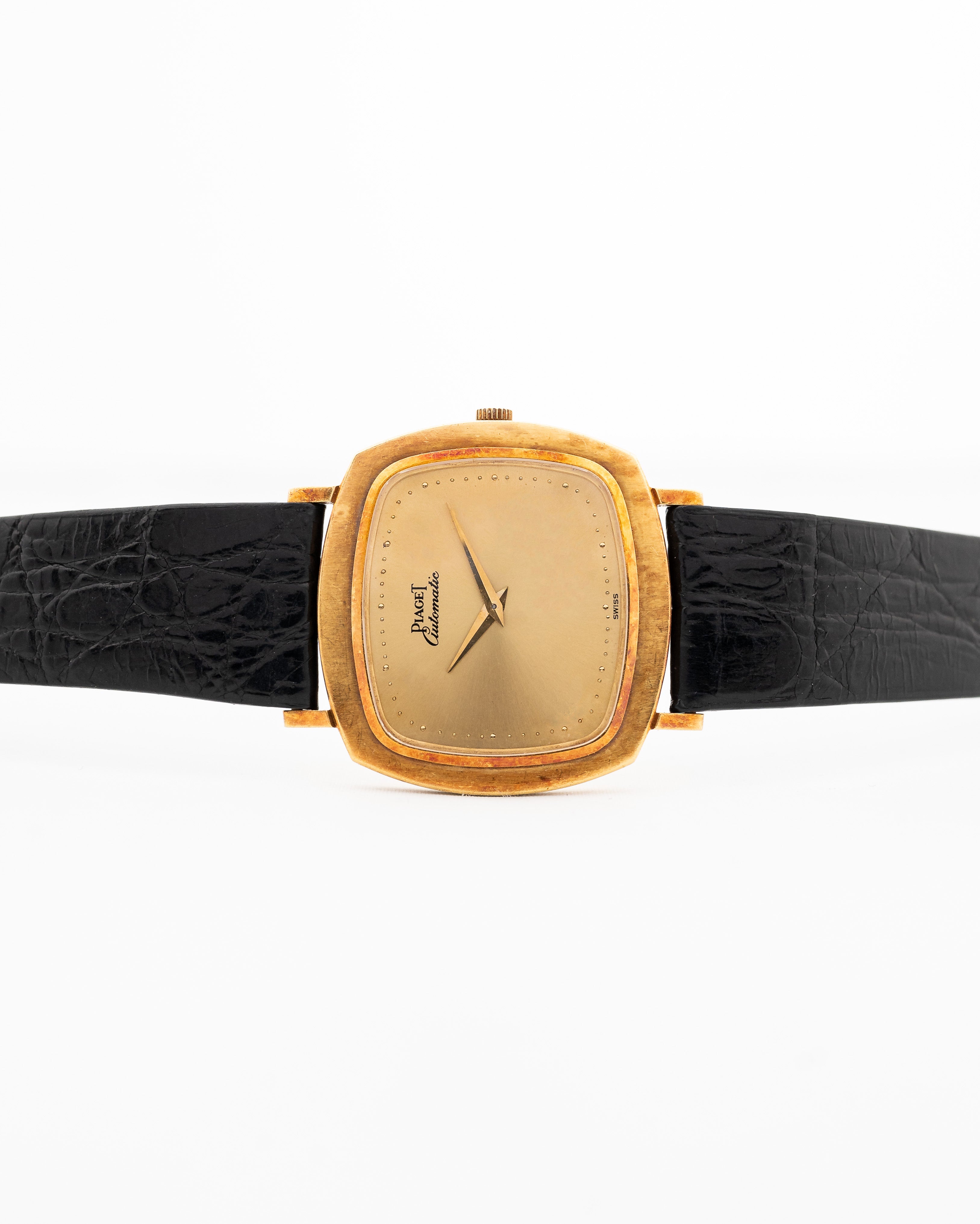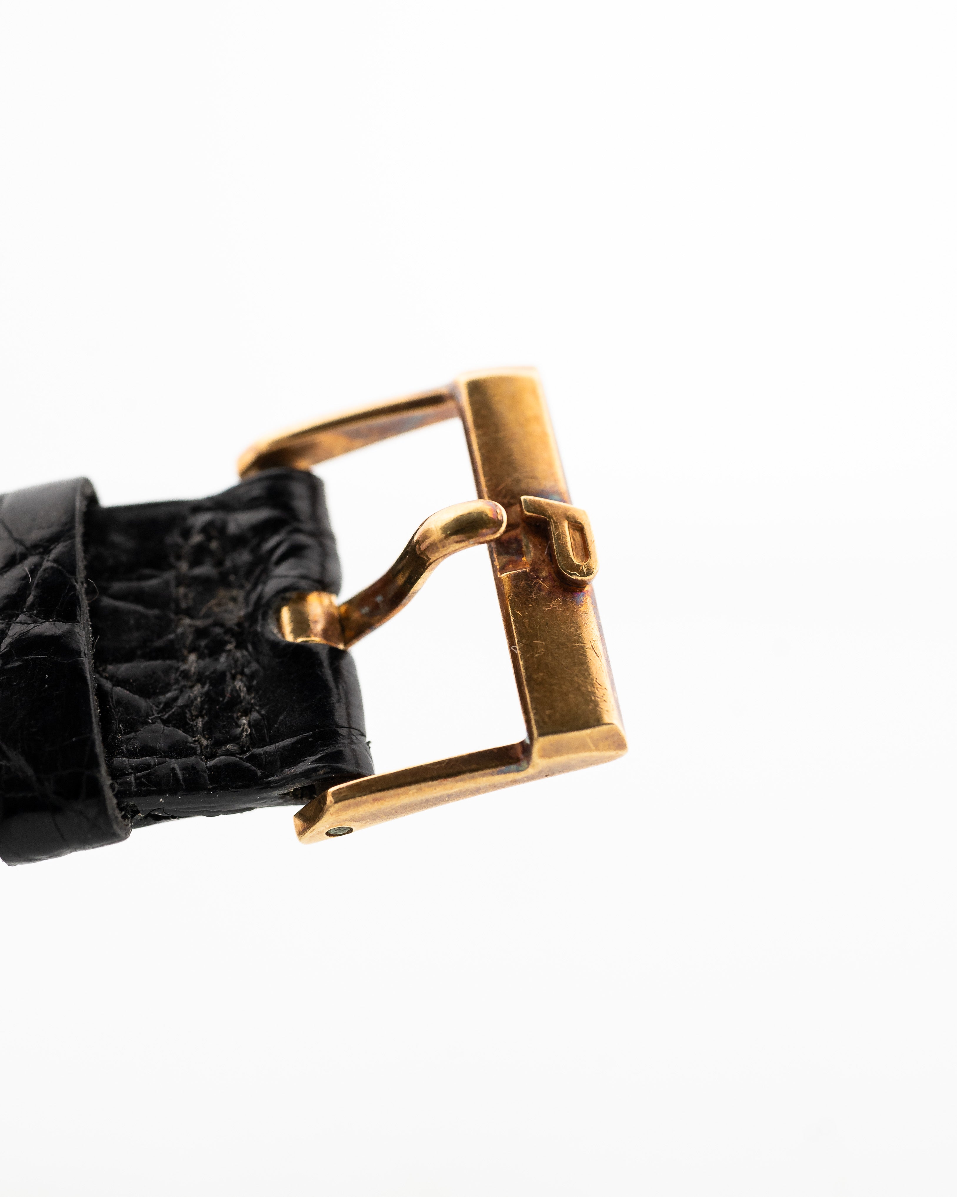 Il nostro pezzo si presenta in condizioni non lucide con il cinturino originale in pelle Piaget e la fibbia Piaget in oro giallo 18 carati, il quadrante color oro è in condizioni impeccabili e la forma rettangolare della cassa è un pezzo d'arte davvero unico.