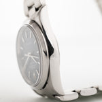 L'Air-King è uno degli ultimi modelli di Rolex che non ha fatto parlare di sé e ha tutto lo stile classico che si può chiedere alla famiglia Oyster Perpetual. Questa referenza ha fatto della semplicità il suo punto di forza: in questo caso, il quadrante pulito di colore blu profondo è accentuato da indici applicati per una chiara leggibilità, mentre l'ampia corona di lancette aggiunge un aspetto complessivamente elegante.