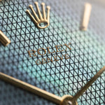La ciliegina sulla torta è che viene fornito con il cinturino originale Rolex in pelle di coccodrillo e la fibbia originale Rolex in oro giallo 18 carati.