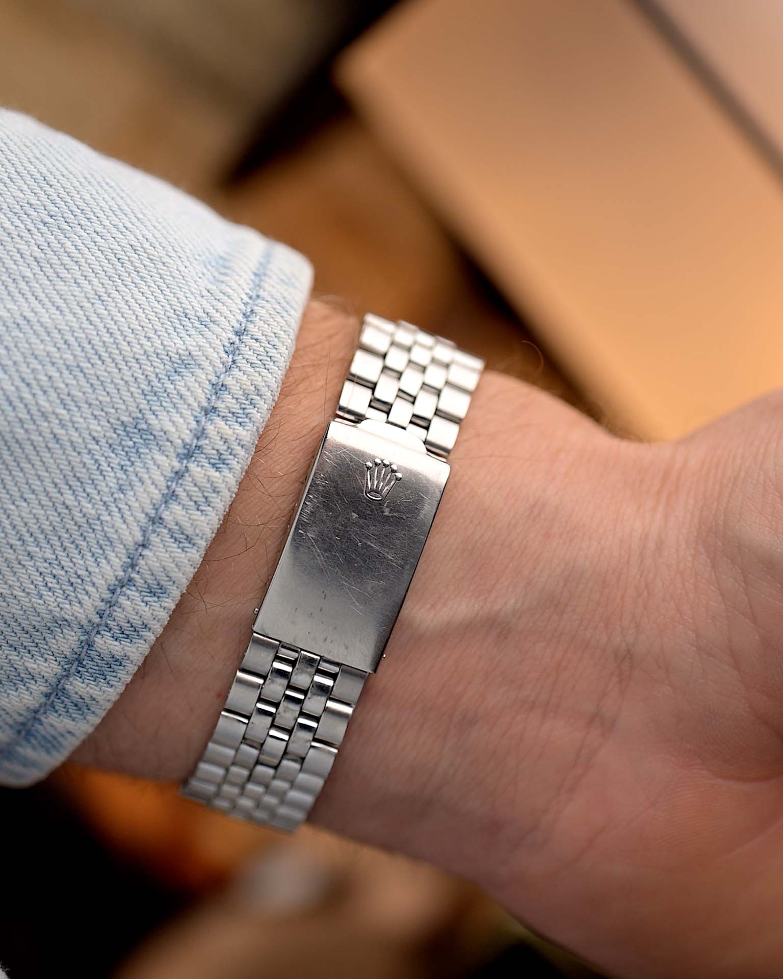- Il bracciale Jubilee originale Rolex in acciaio inossidabile ripiegato, con un po' di elasticità in più, si adatta a polsi di dimensioni fino a 20 cm / 2,7 mm di spessore.