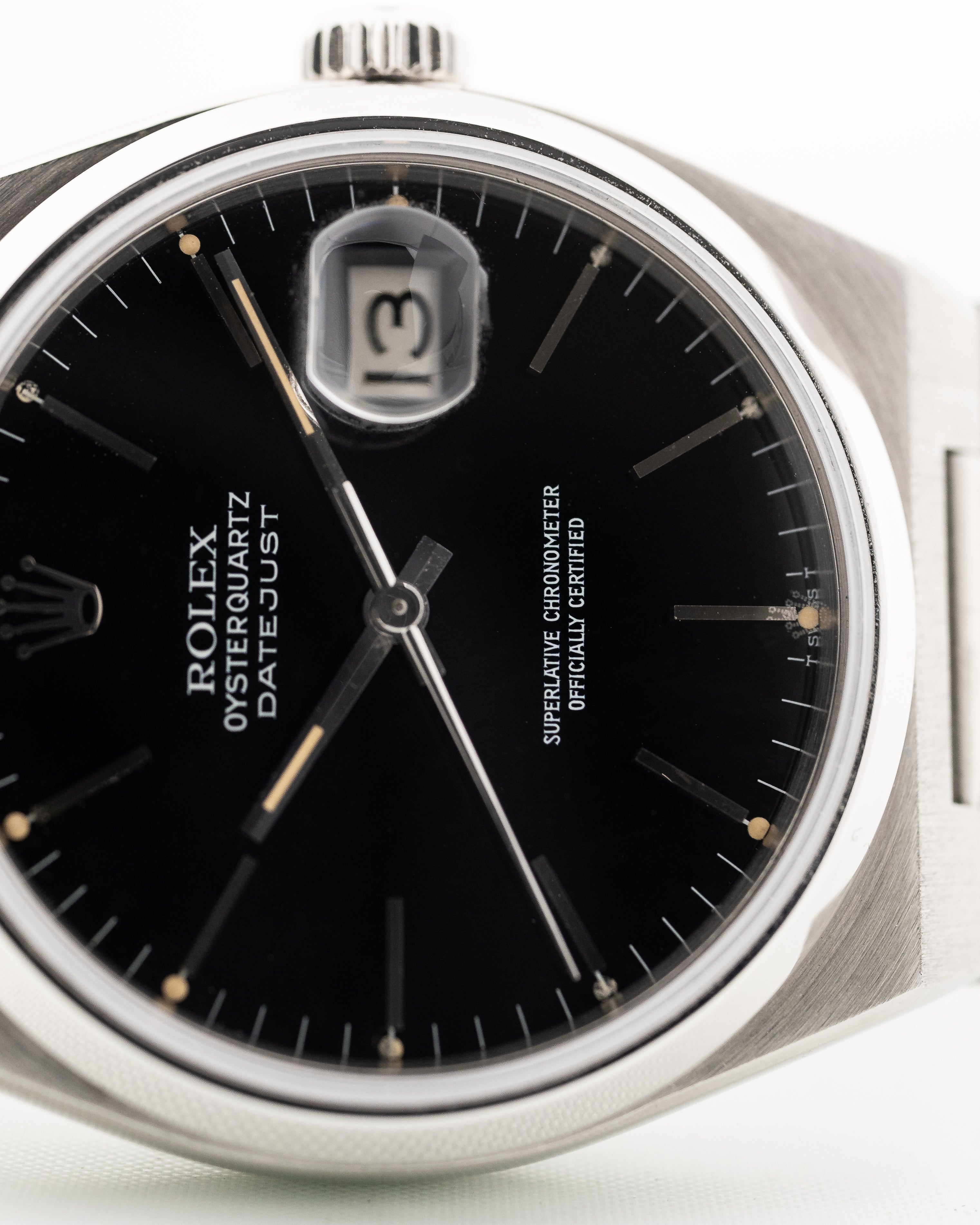 Le condizioni della cassa sono la cosa più importante da osservare nei modelli Oysterquartz, sono più rari ed è quasi impossibile trovarli in condizioni come il nostro esempio, soprattutto con questo quadrante nero in condizioni impeccabili.