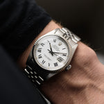Se sta cercando un Orologio Vintage per l'uso quotidiano, il Rolex Datejust è apparentemente il primo da prendere in considerazione! Combina praticamente tutto ciò di cui può avere bisogno quotidianamente: un design eccezionale e senza tempo che si abbina letteralmente a qualsiasi abbigliamento, dimensioni di 36 mm perfettamente bilanciate, capacità di impermeabilità della famosa famiglia Oyster e, naturalmente, la leggendaria precisione e durata dei movimenti cronometrici automatici Rolex.