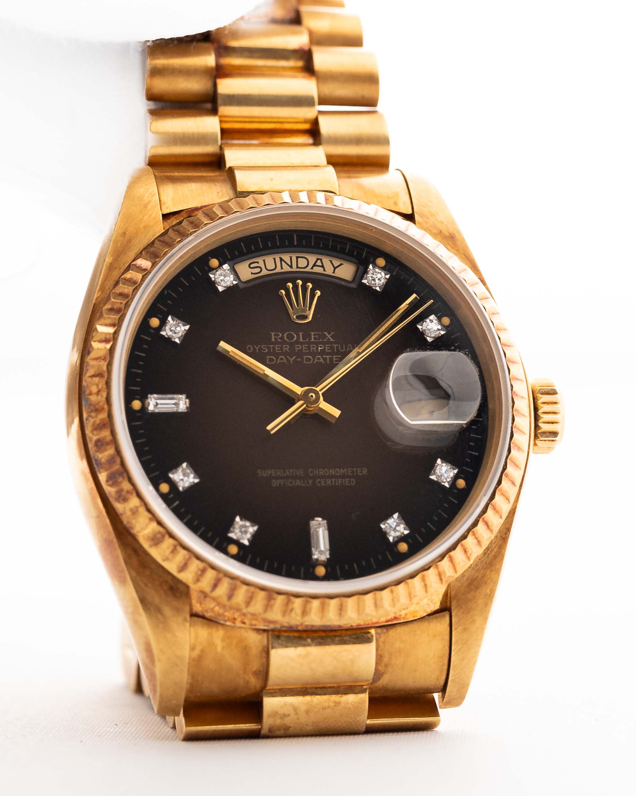Rolex Day-Date 18038, quadrante marrone con vignette di diamanti, 1981 - L'orologio del Presidente - Potenza, prestigio e patina